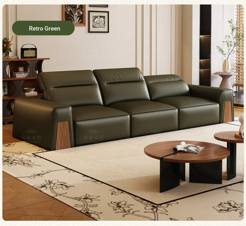 [Retro Green-Comfort Edition] Four-person 129.92in [S-grade Black Walnut + S-grade High Quality Ecological Leather]]