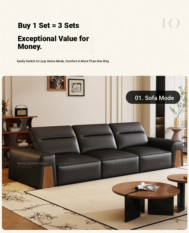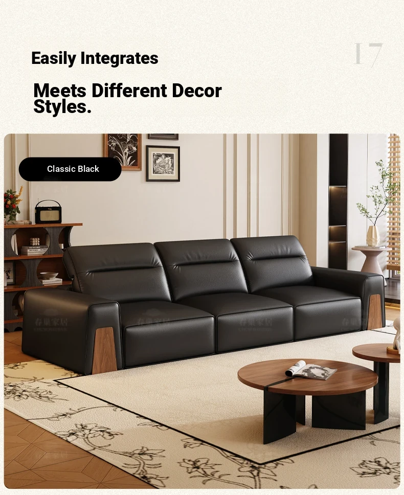 [Classic Black-Comfort Edition] Four-person 129.92in [S-grade Black Walnut + S-grade High Quality Ecological Leather]]