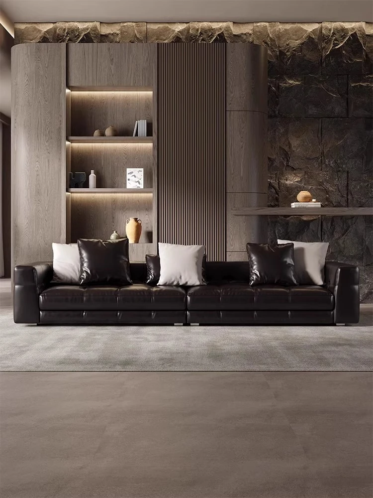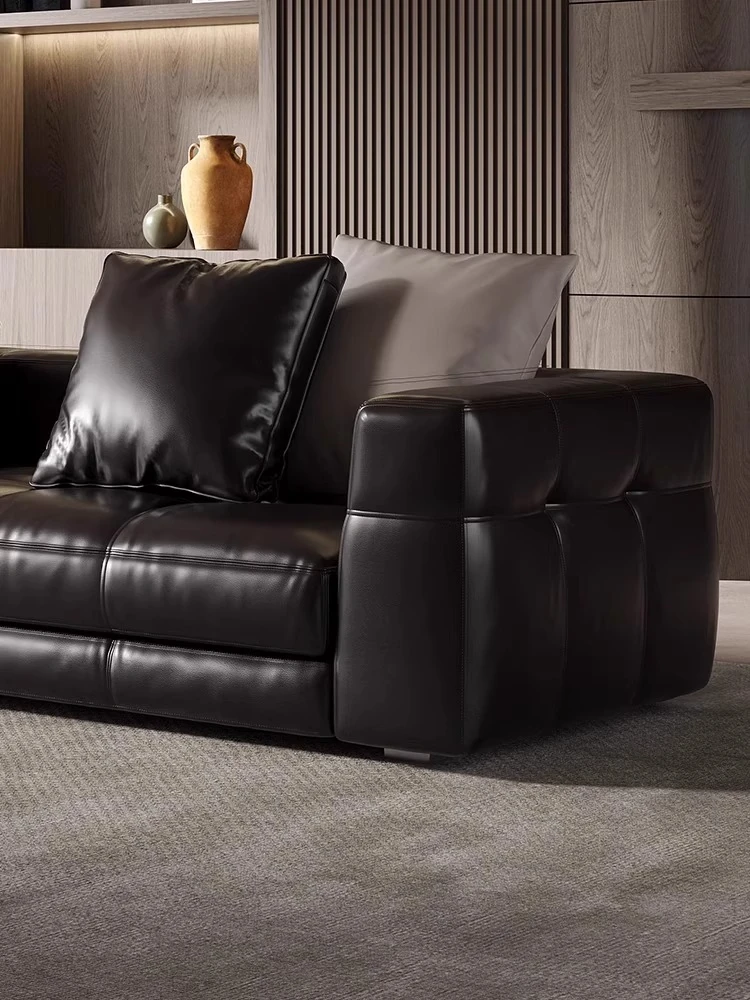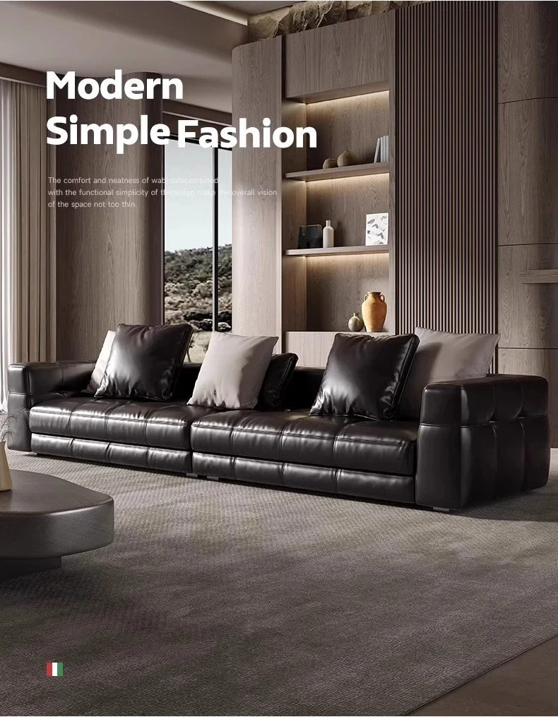 2025年新作!イタリアンレザー製ブレザーソファ - ミニマルなデザインで高級感溢れる豆腐ブロック型、リビングにぴったり!狭いお部屋にも最適なスリムなレイアウト。あなたの空間をスタイリッシュに演出します!