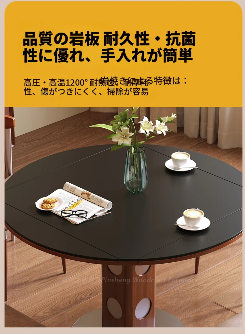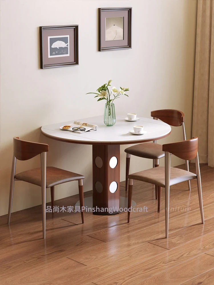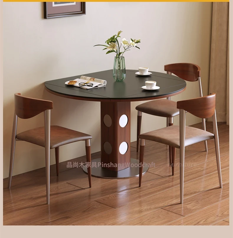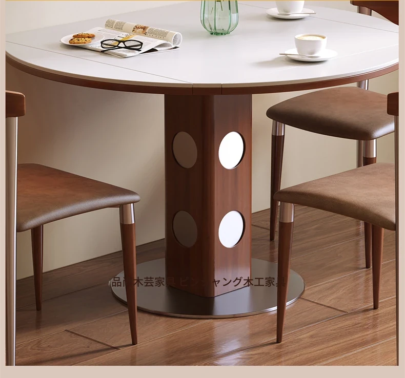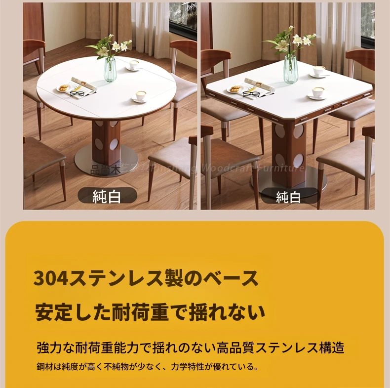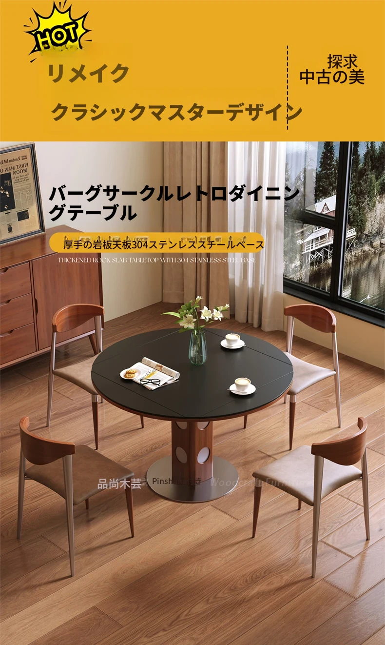 バウハウス風の中古実木折りたたみテーブル - 新デザインの円形に変形可能な岩板正方形テーブル、フランススタイルの伸縮式ダイニングテーブルで、家族や友人との食事をより特別に演出します!