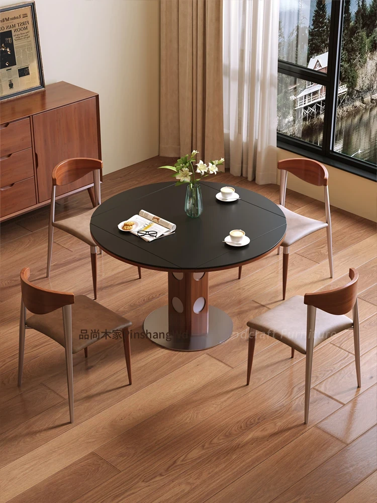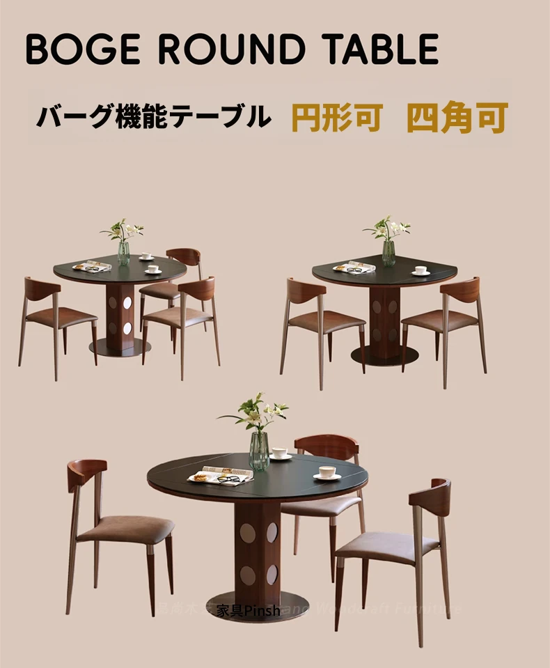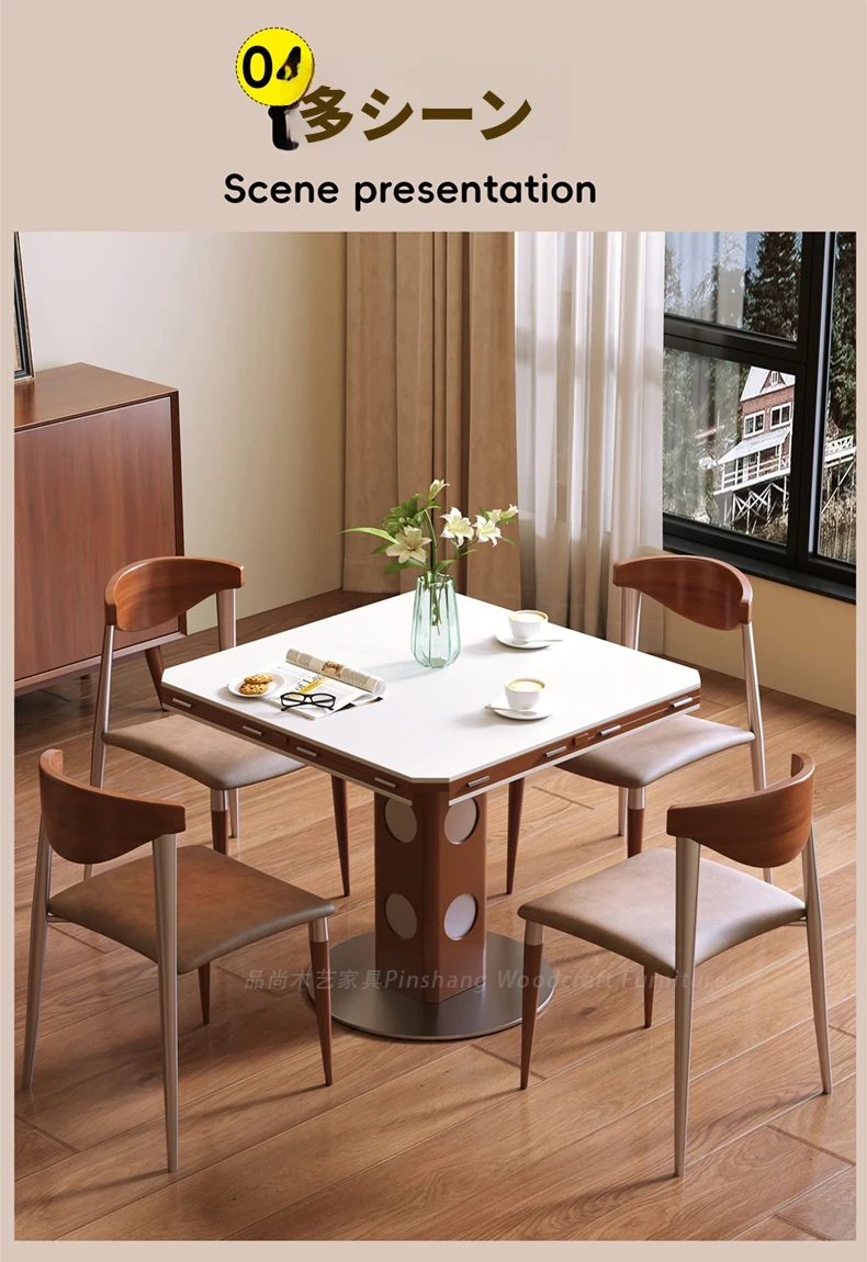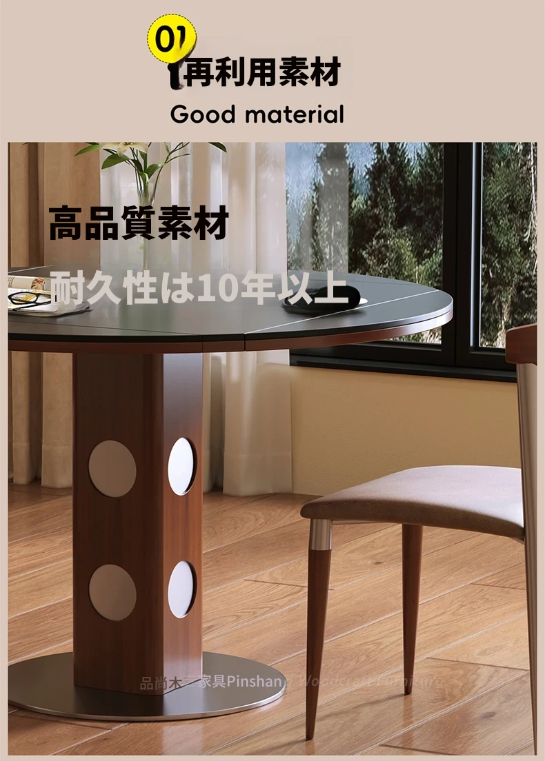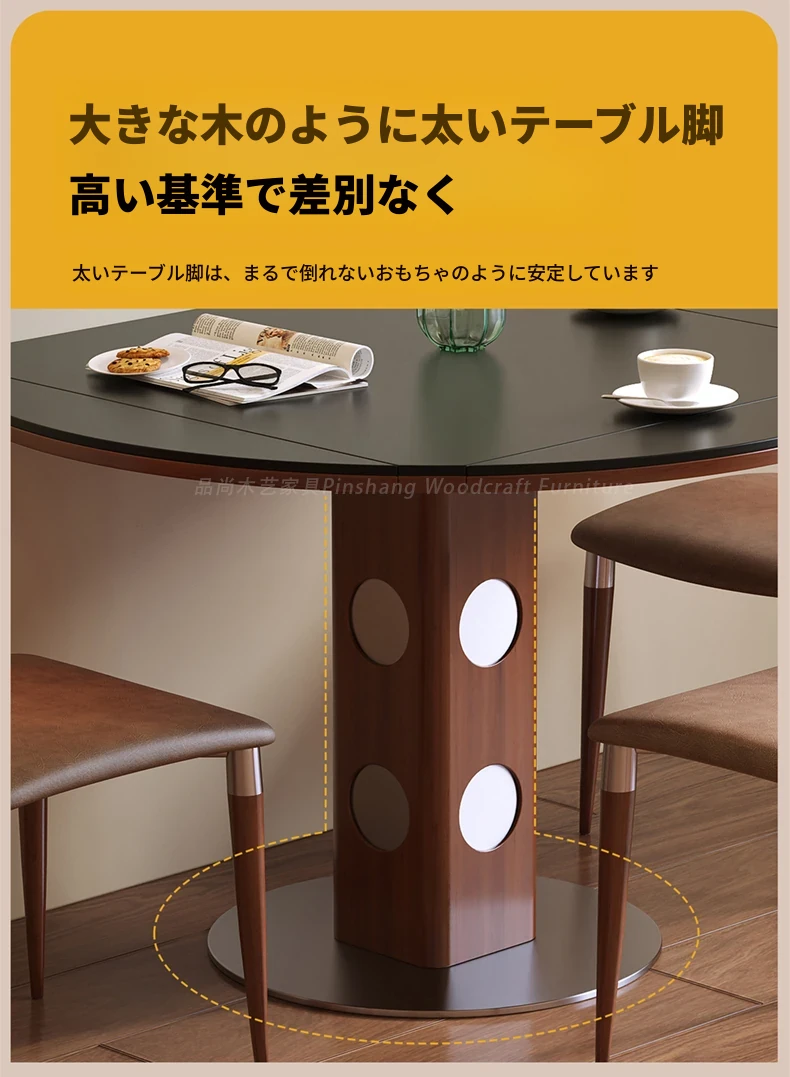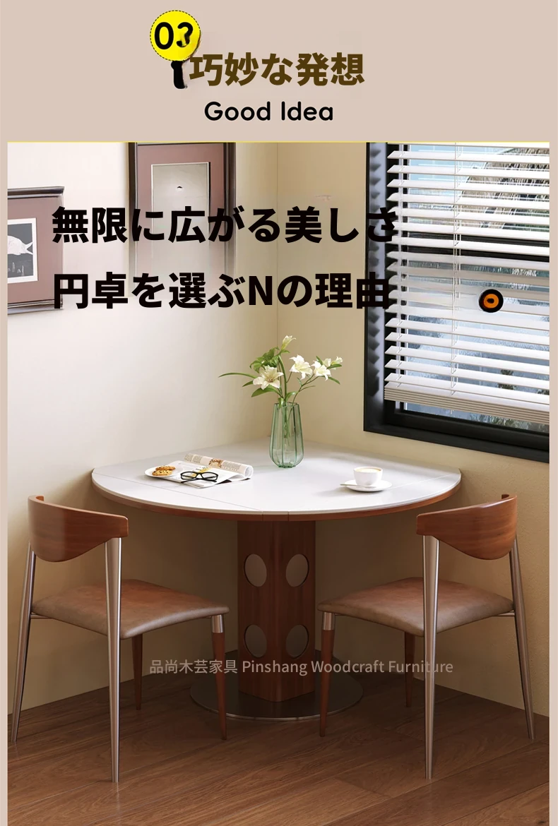 バウハウス風の中古実木折りたたみテーブル - 新デザインの円形に変形可能な岩板正方形テーブル、フランススタイルの伸縮式ダイニングテーブルで、家族や友人との食事をより特別に演出します!