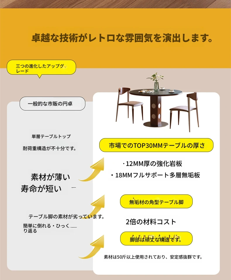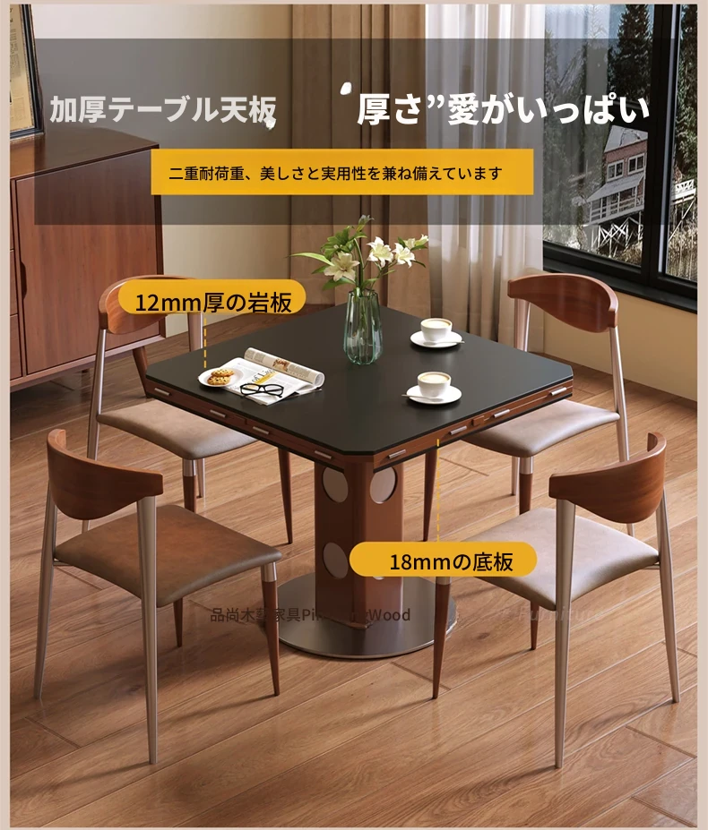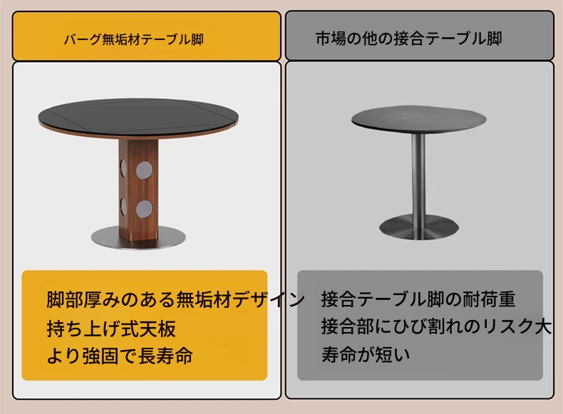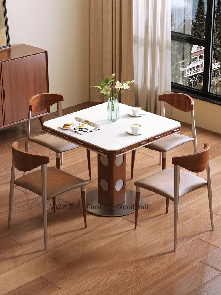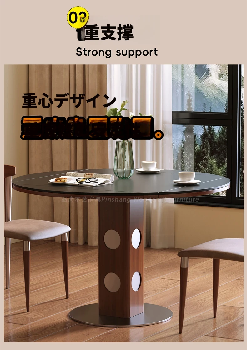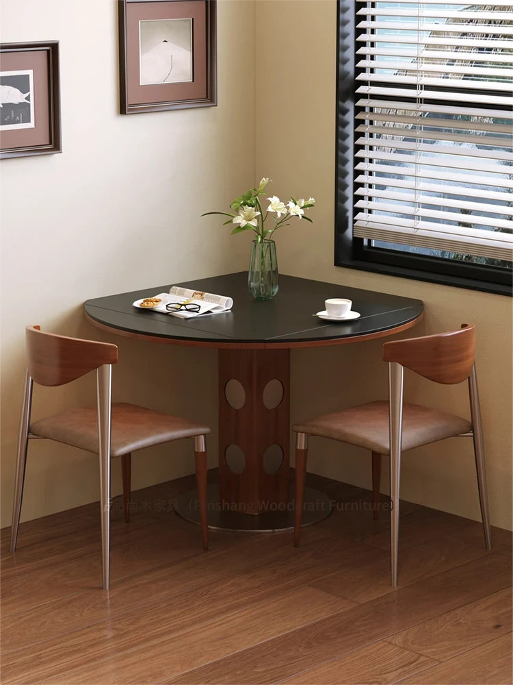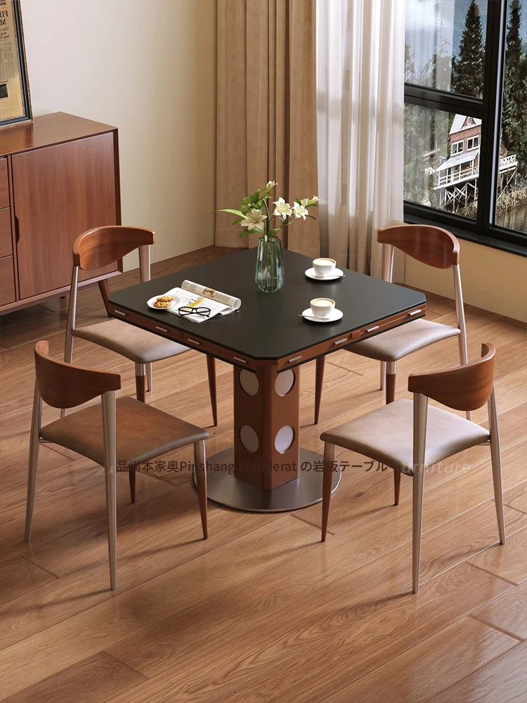 バウハウス風の中古実木折りたたみテーブル - 新デザインの円形に変形可能な岩板正方形テーブル、フランススタイルの伸縮式ダイニングテーブルで、家族や友人との食事をより特別に演出します!