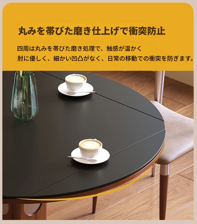 1.1メートル 墨宸黒 4つ折り円形テーブル【イノロ岩板】
