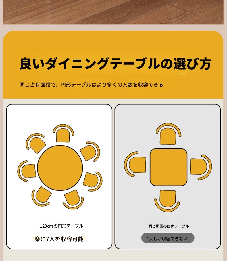 1.2メートル 極白 4つ折り円形テーブル + 沐風椅子 x6