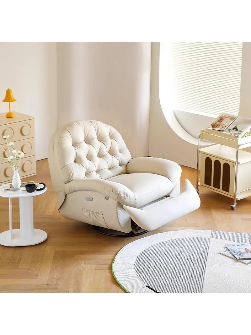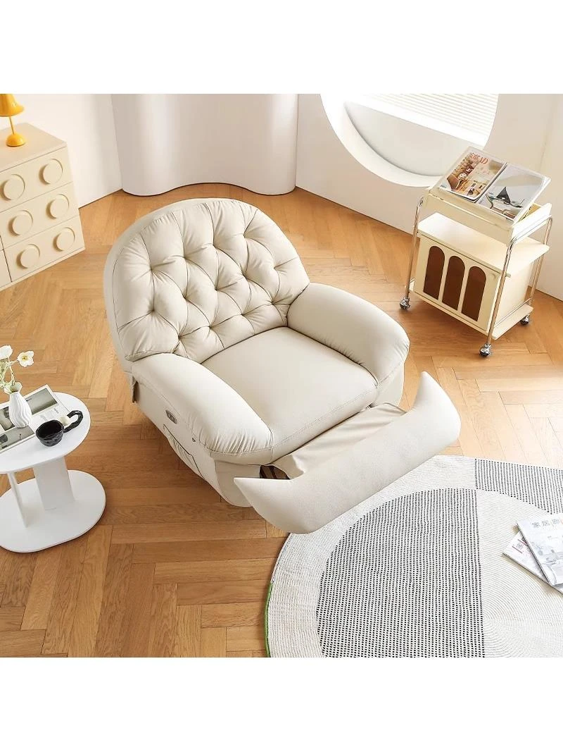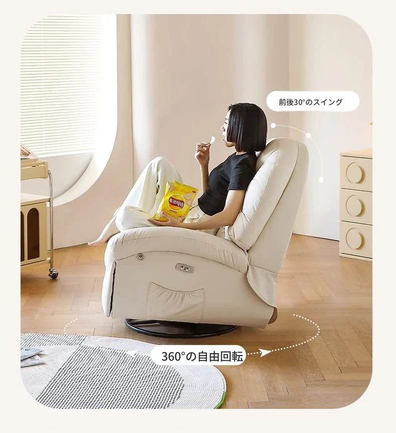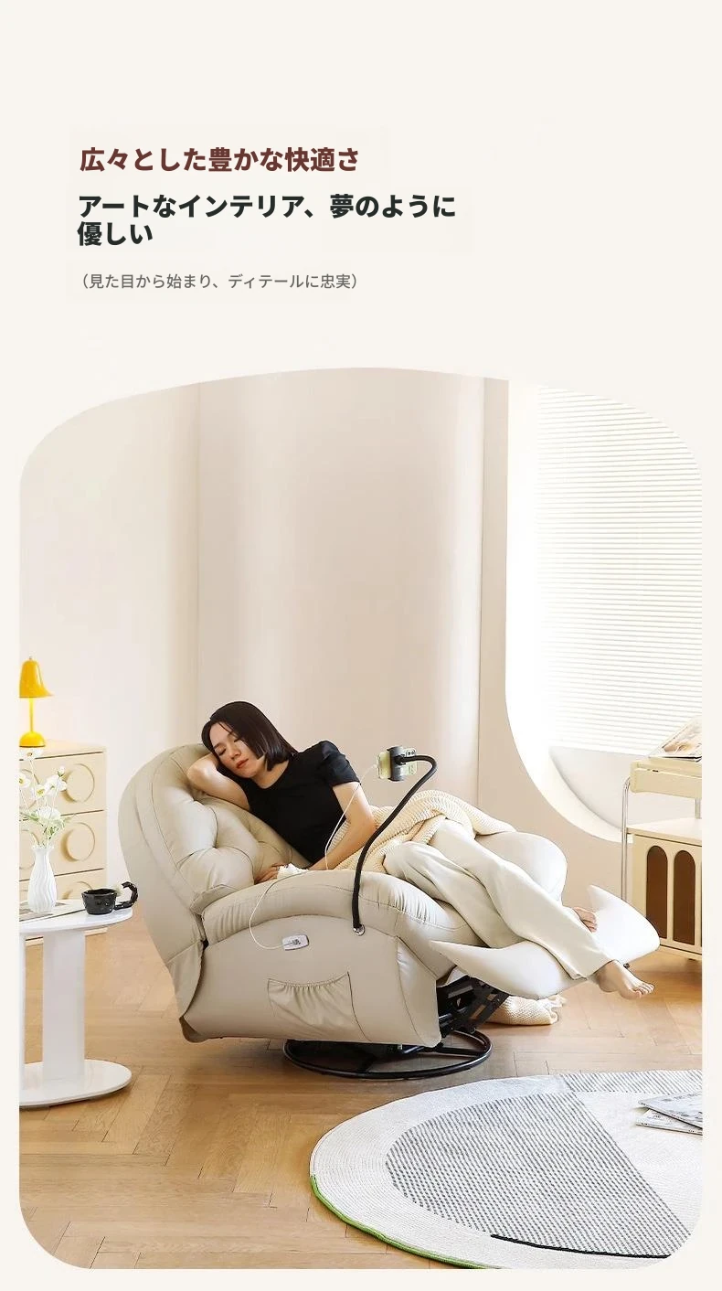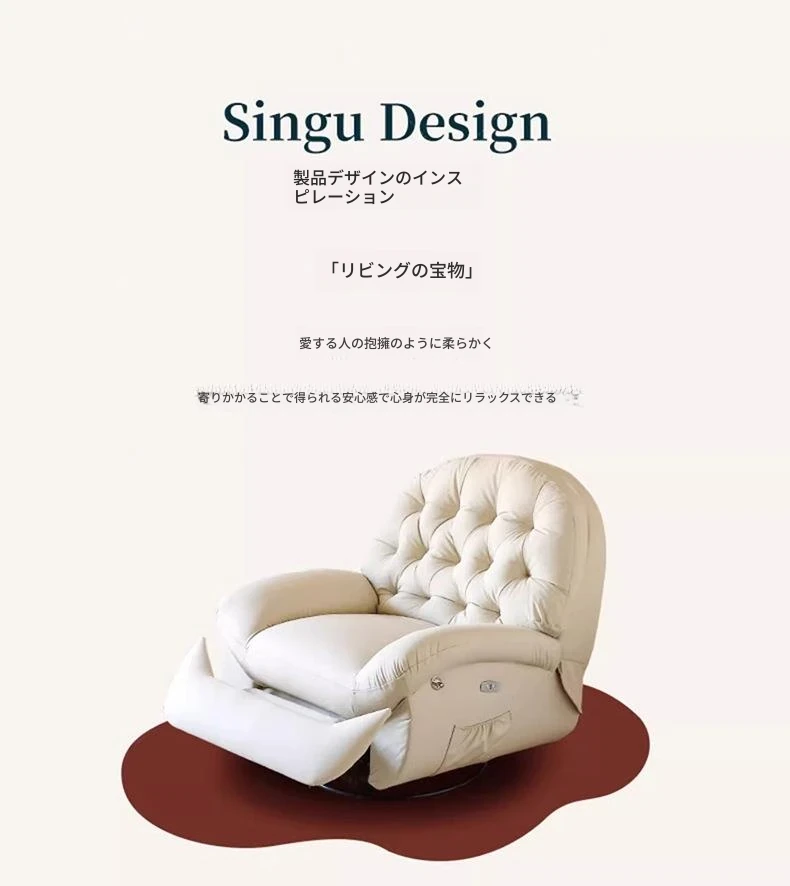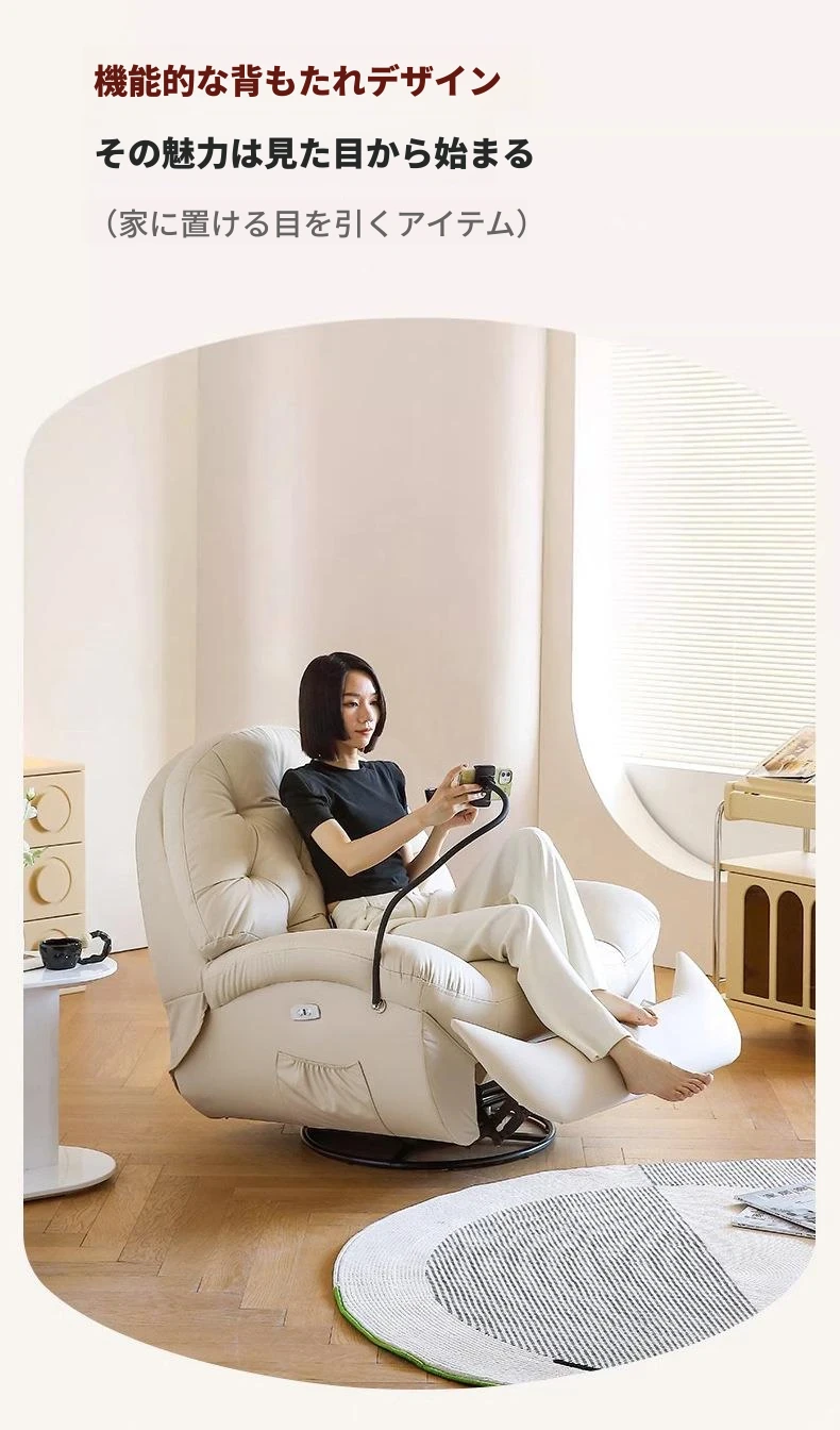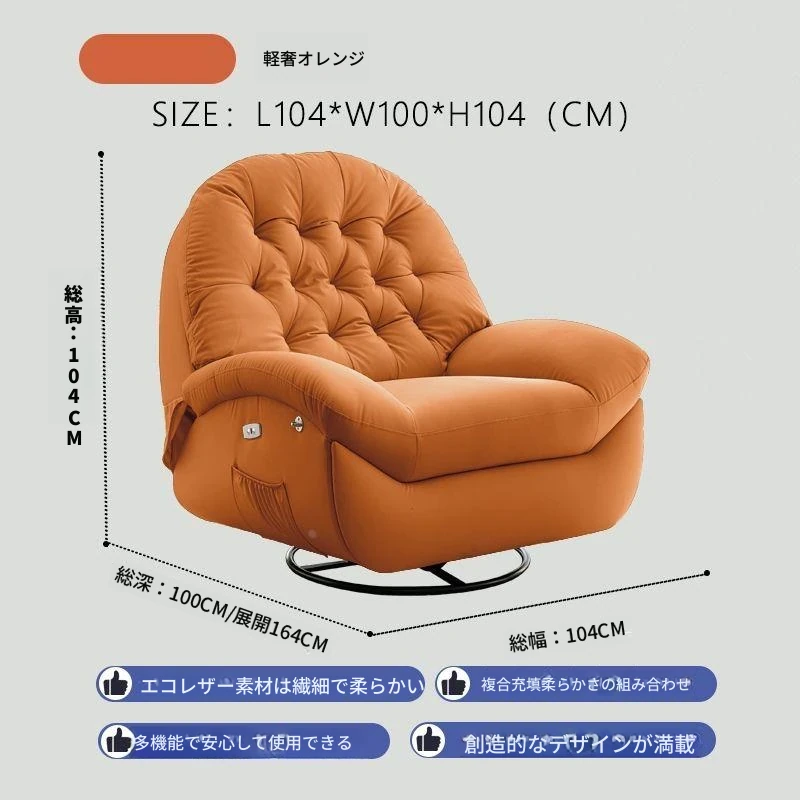 コンパクト電動一人用ファーストクラススペースラウンジソファ、リクライニング機能付き!多機能でおしゃれなリビングやバルコニーにぴったりな本革ロッキングチェア。快適さとスタイルを兼ね備えた究極の癒し空間を提供します!
