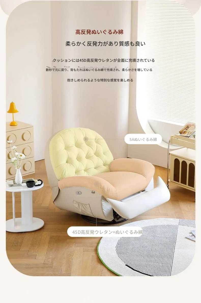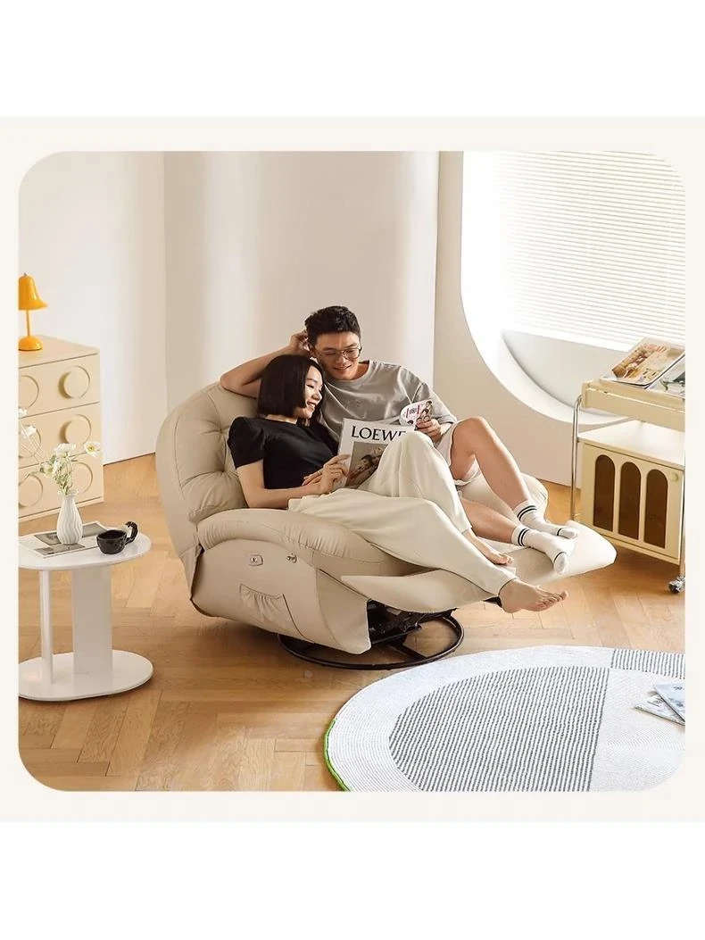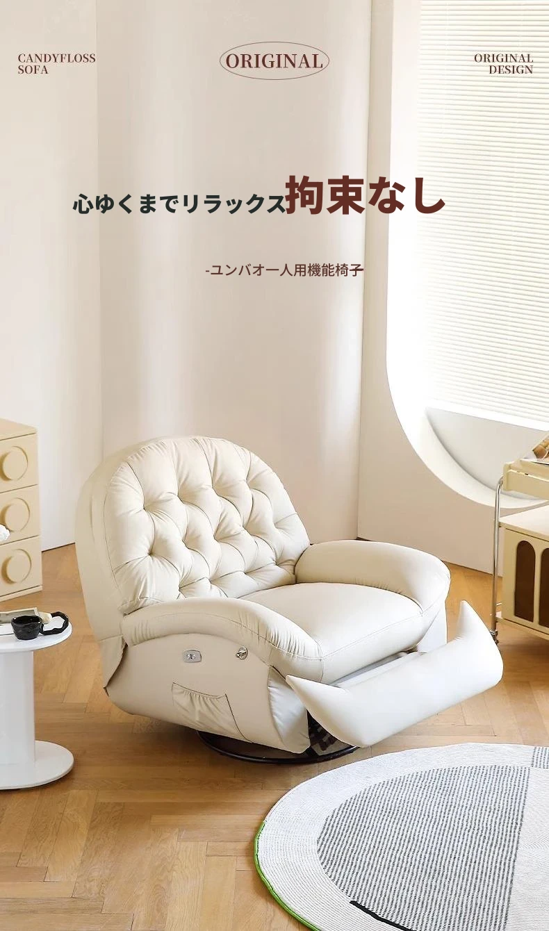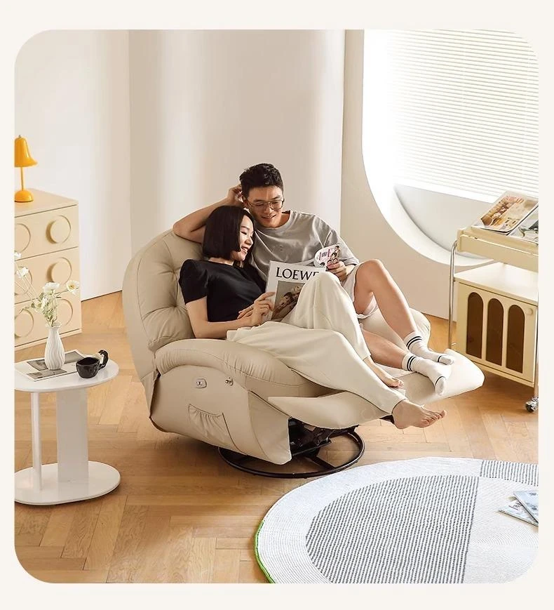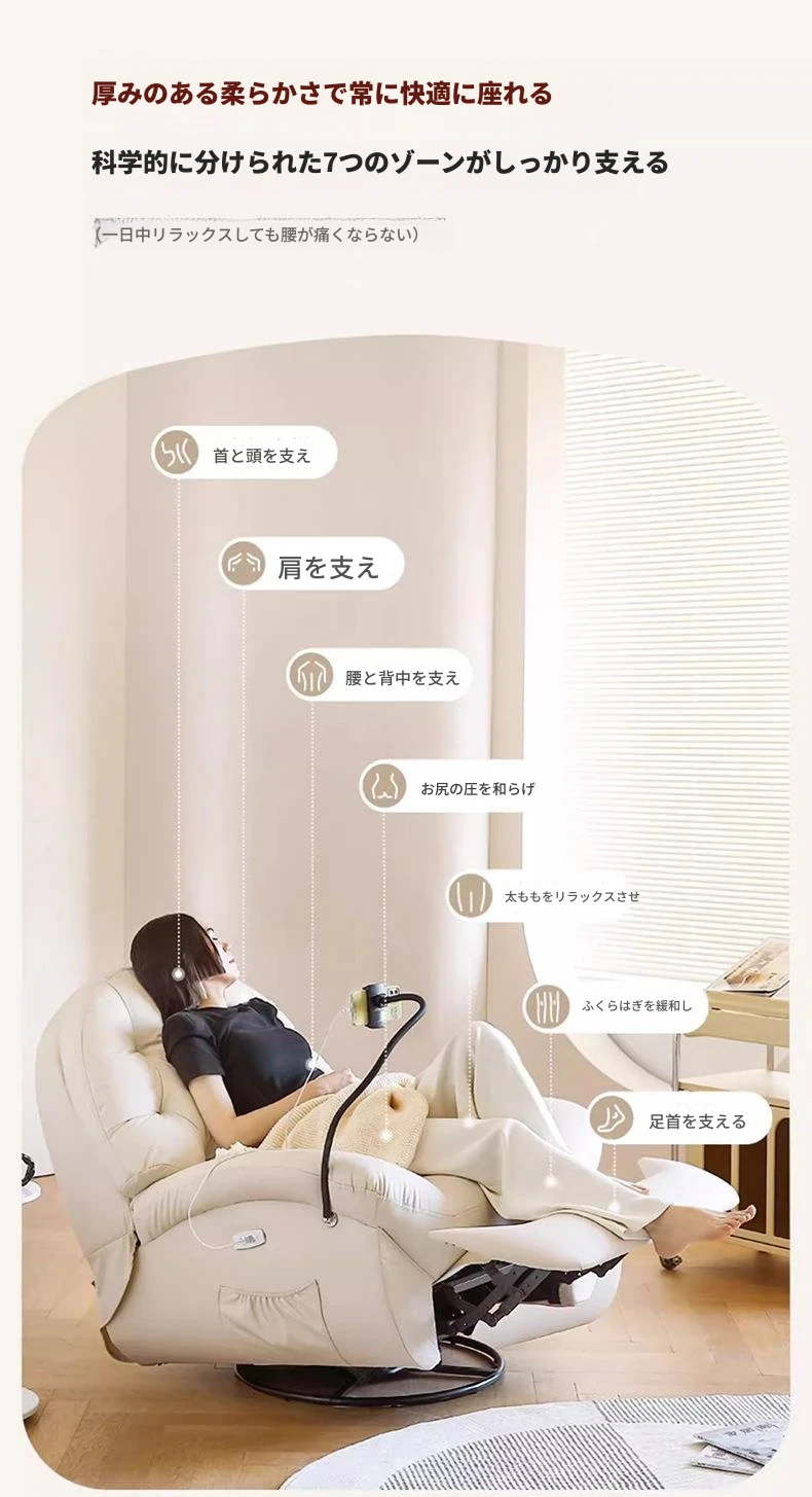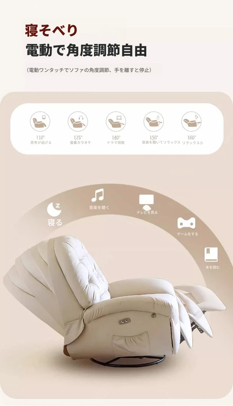 コンパクト電動一人用ファーストクラススペースラウンジソファ、リクライニング機能付き!多機能でおしゃれなリビングやバルコニーにぴったりな本革ロッキングチェア。快適さとスタイルを兼ね備えた究極の癒し空間を提供します!