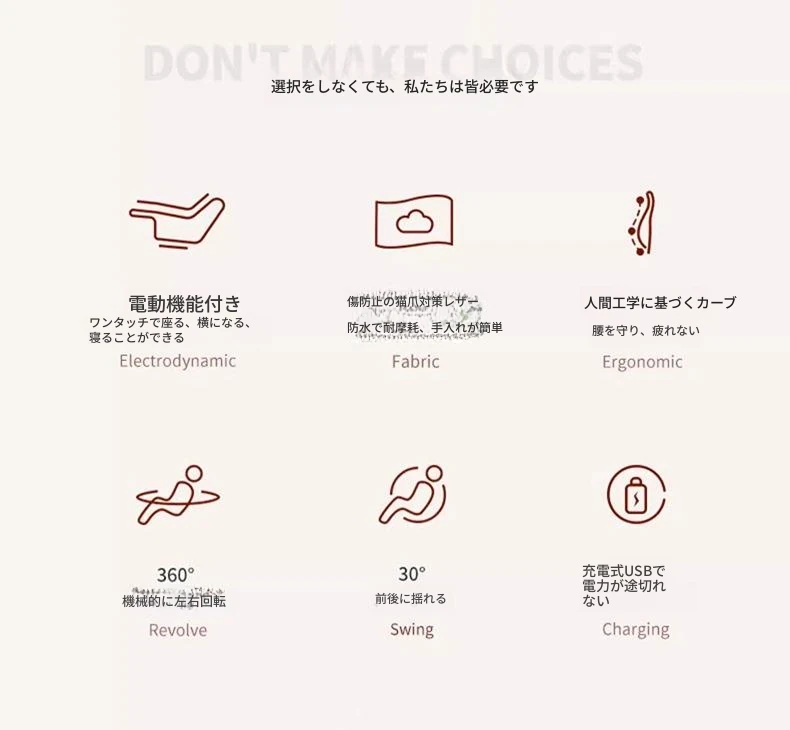 電動タイプ【270°回転+座って横になる+USB】