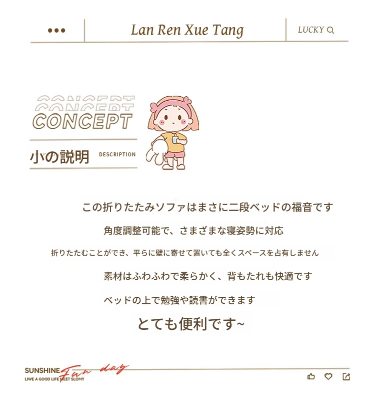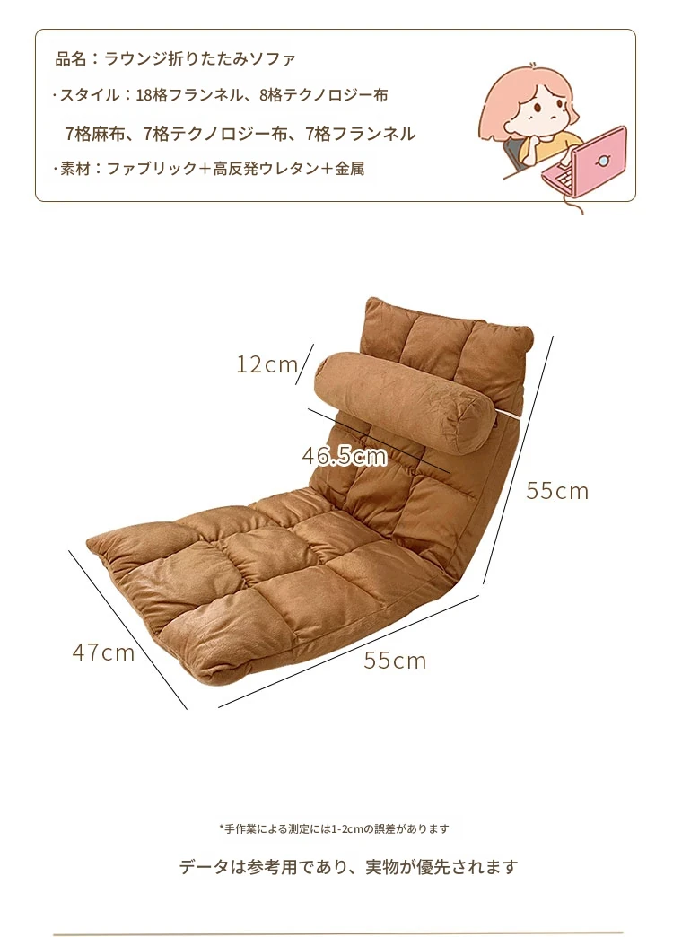 dormitory用のリラックスソファ|寝転がれる&座れる!一人用の小さなソファ|畳や寝室、バルコニーに最適|クッション付きで快適なひとときをお楽しみください!
