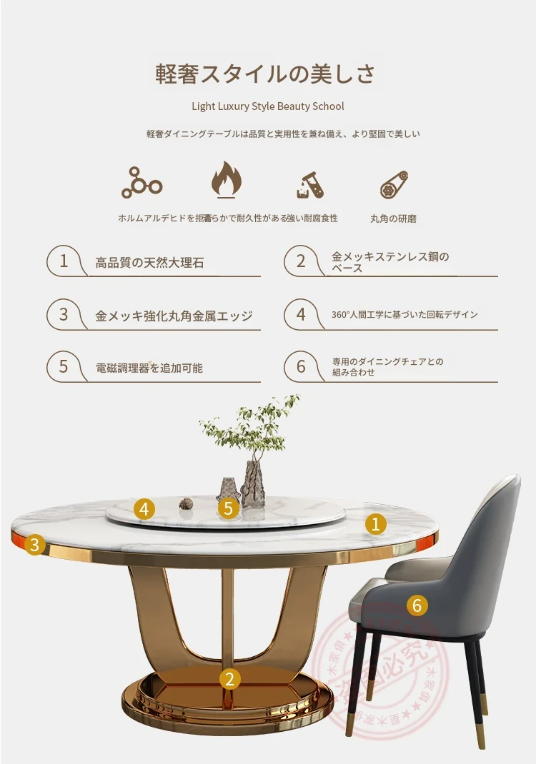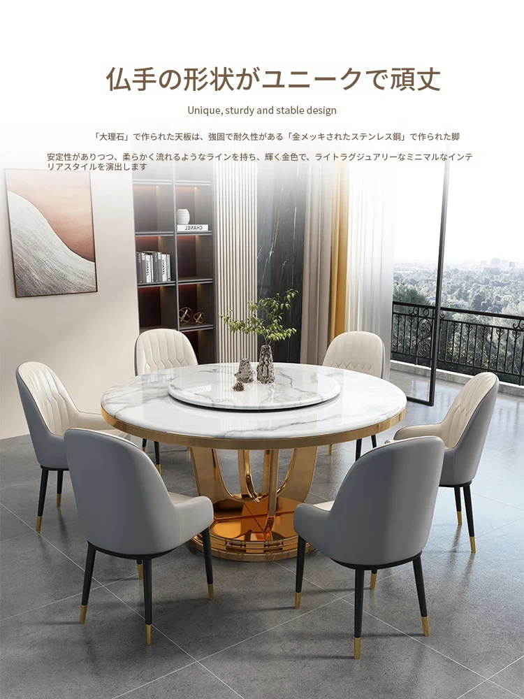 ラグジュアリー大理石ダイニングテーブル(回転盤付き)+6椅子