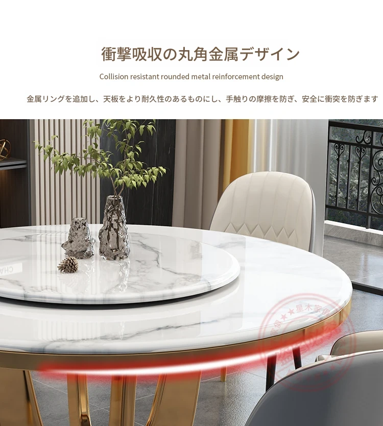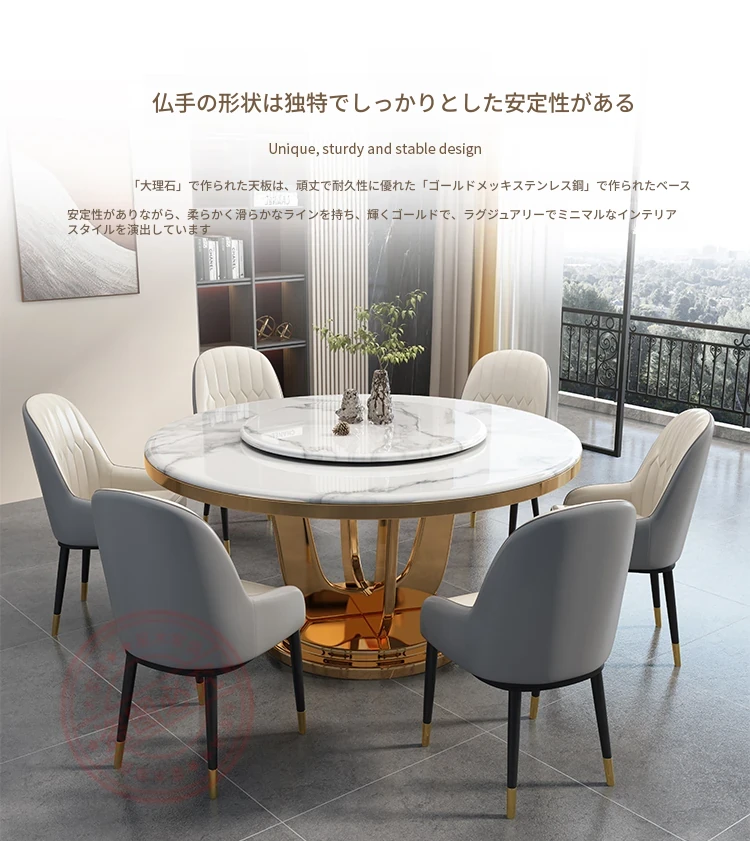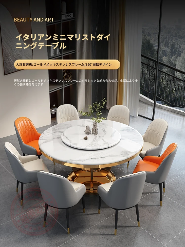 ラグジュアリー大理石ダイニングテーブル(回転盤付き)+8椅子
