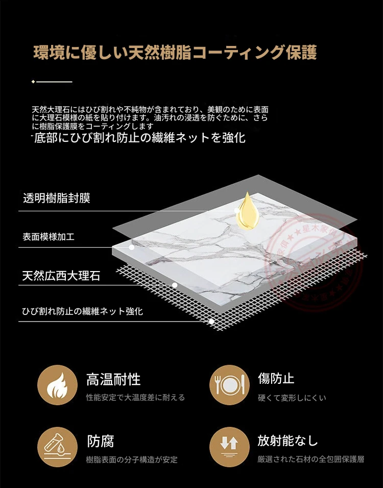 ラグジュアリー大理石ダイニングテーブル(回転盤付き)+4椅子