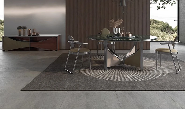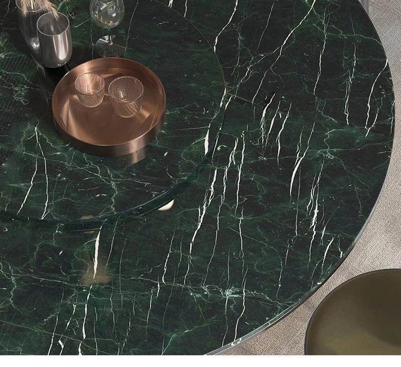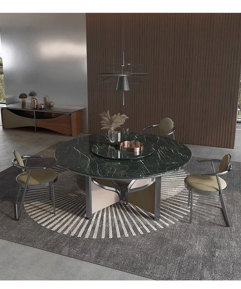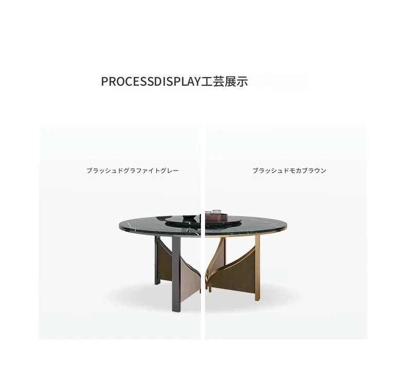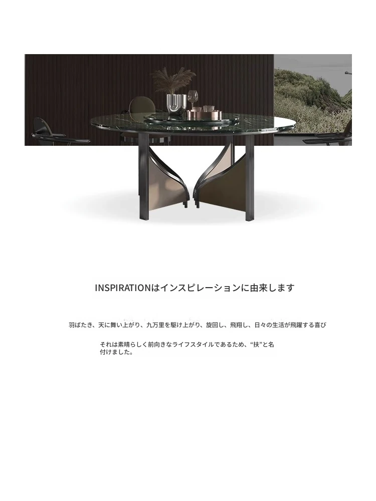 ラグジュアリーな天然石を使用した軽奢ダイニングテーブル。高級感溢れるデザインの星球型テーブル&チェアセット。ヴィラやおしゃれな家にぴったりなイタリアンミニマリズム。