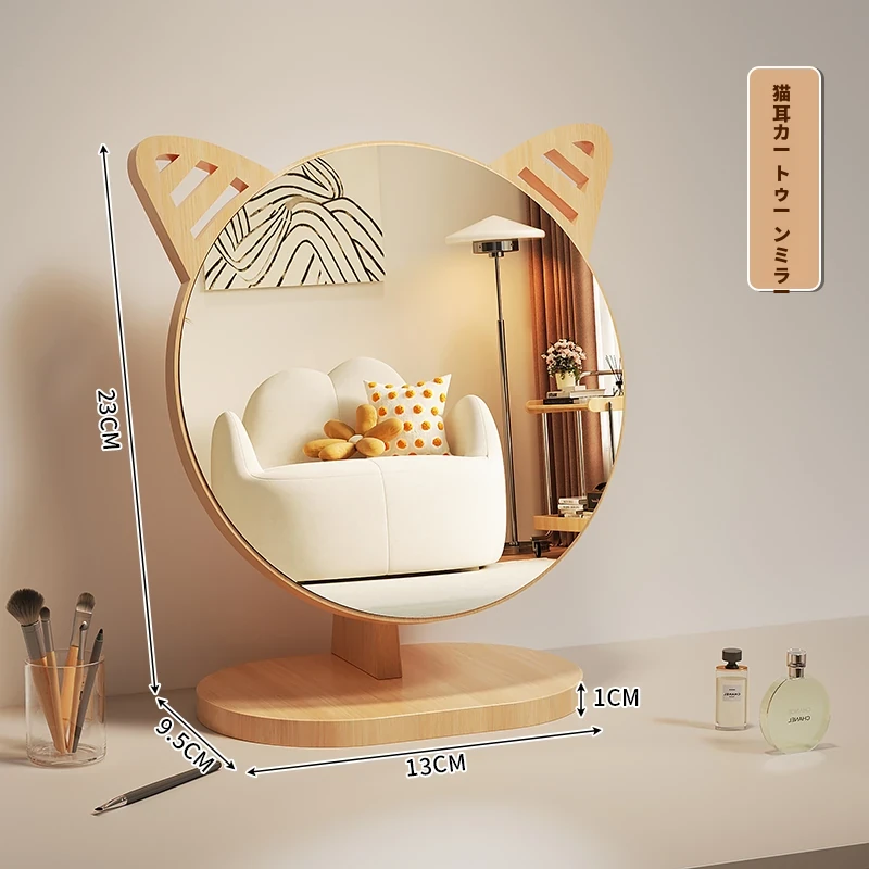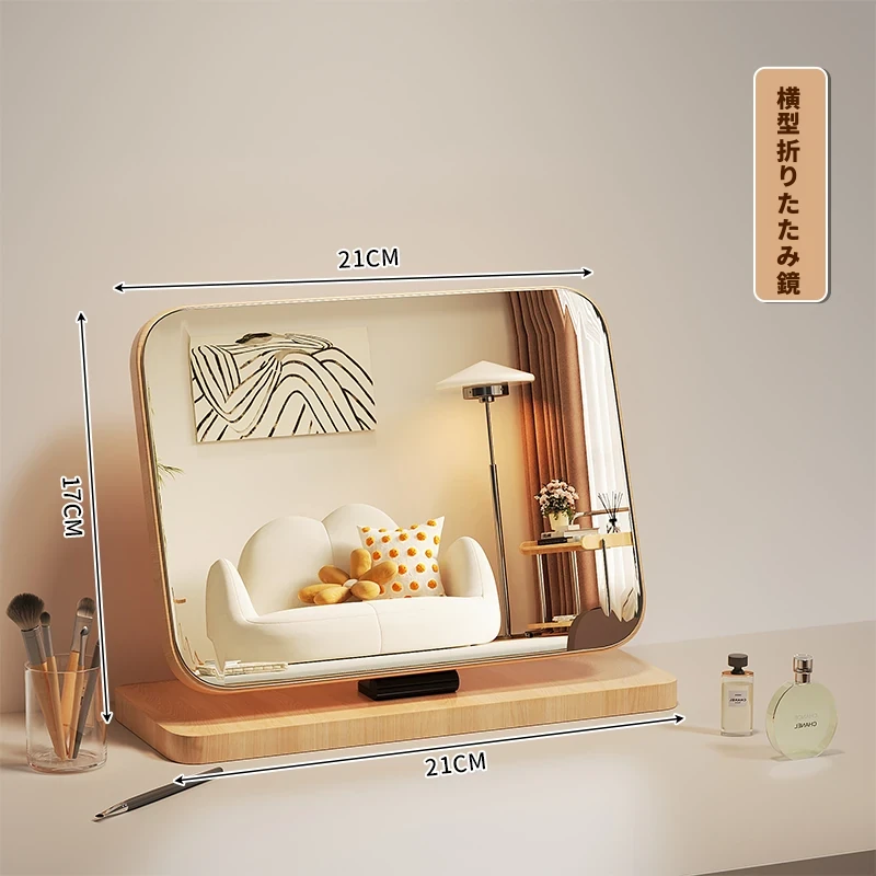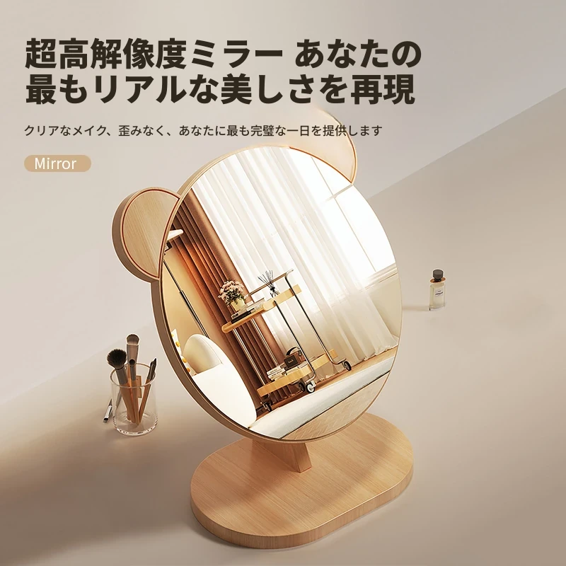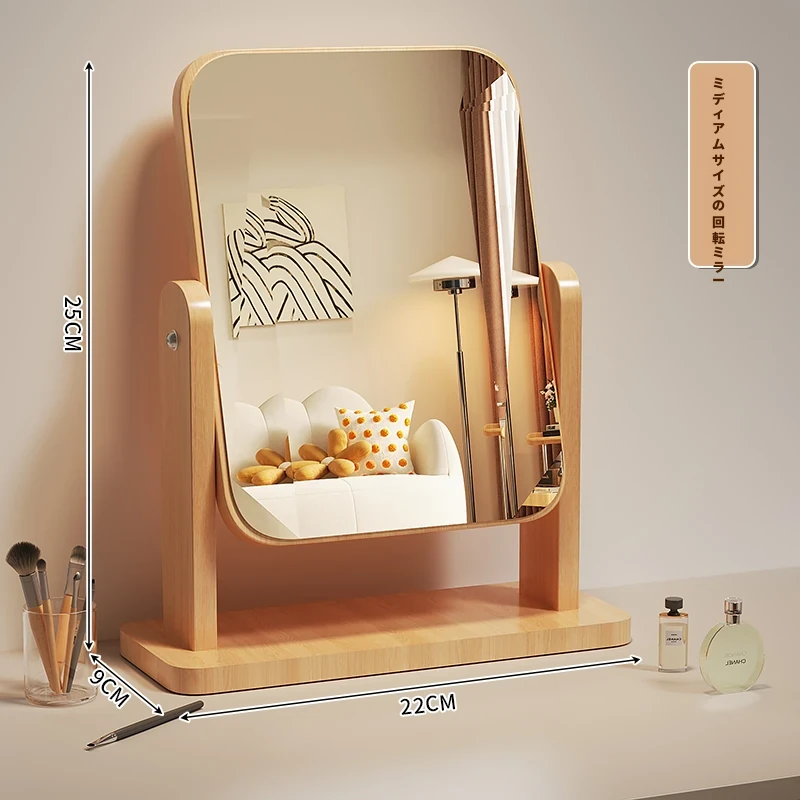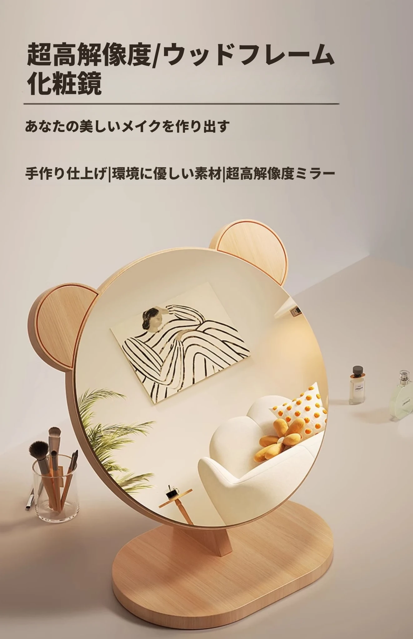 折りたたみ式化粧鏡 学生寮向け 回転式ミラー おしゃれな寝室用ドレッシングミラー 家庭用デスクトップ木製ラウンドミラー お部屋を彩るアイテム!
