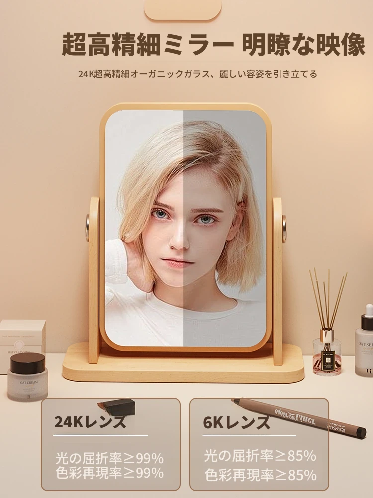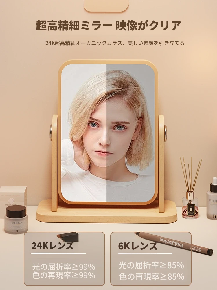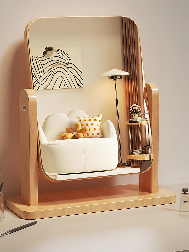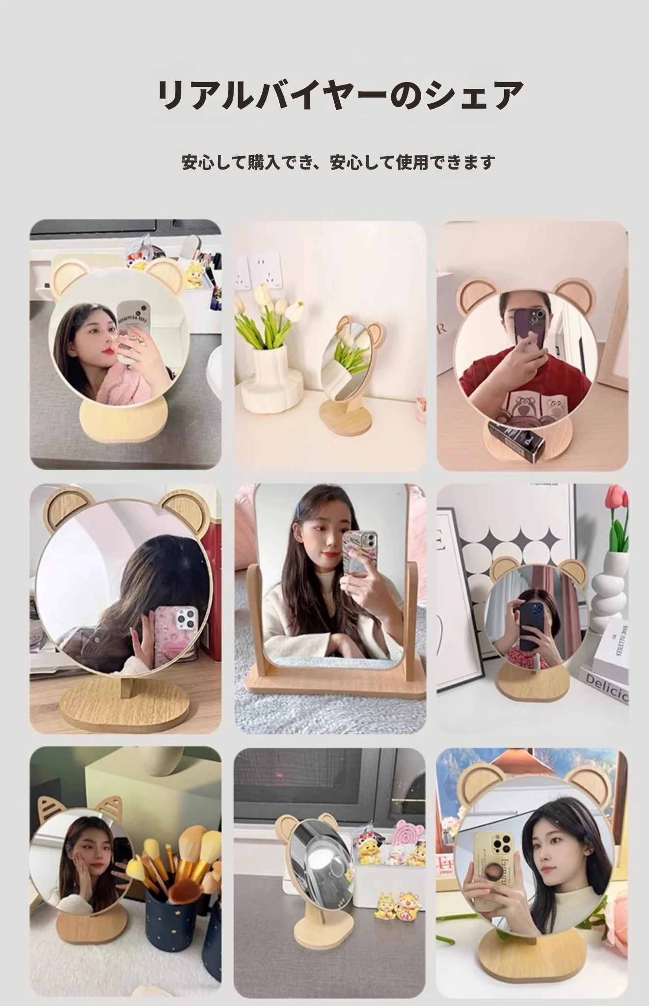 折りたたみ式化粧鏡 学生寮向け 回転式ミラー おしゃれな寝室用ドレッシングミラー 家庭用デスクトップ木製ラウンドミラー お部屋を彩るアイテム!