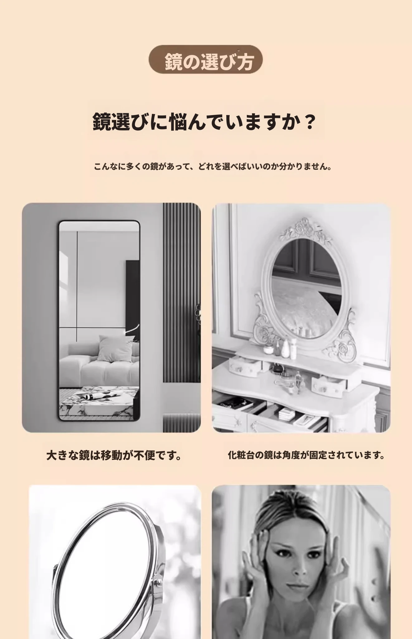 縦型スクエア高精細ミラー - 折りたたみ可能