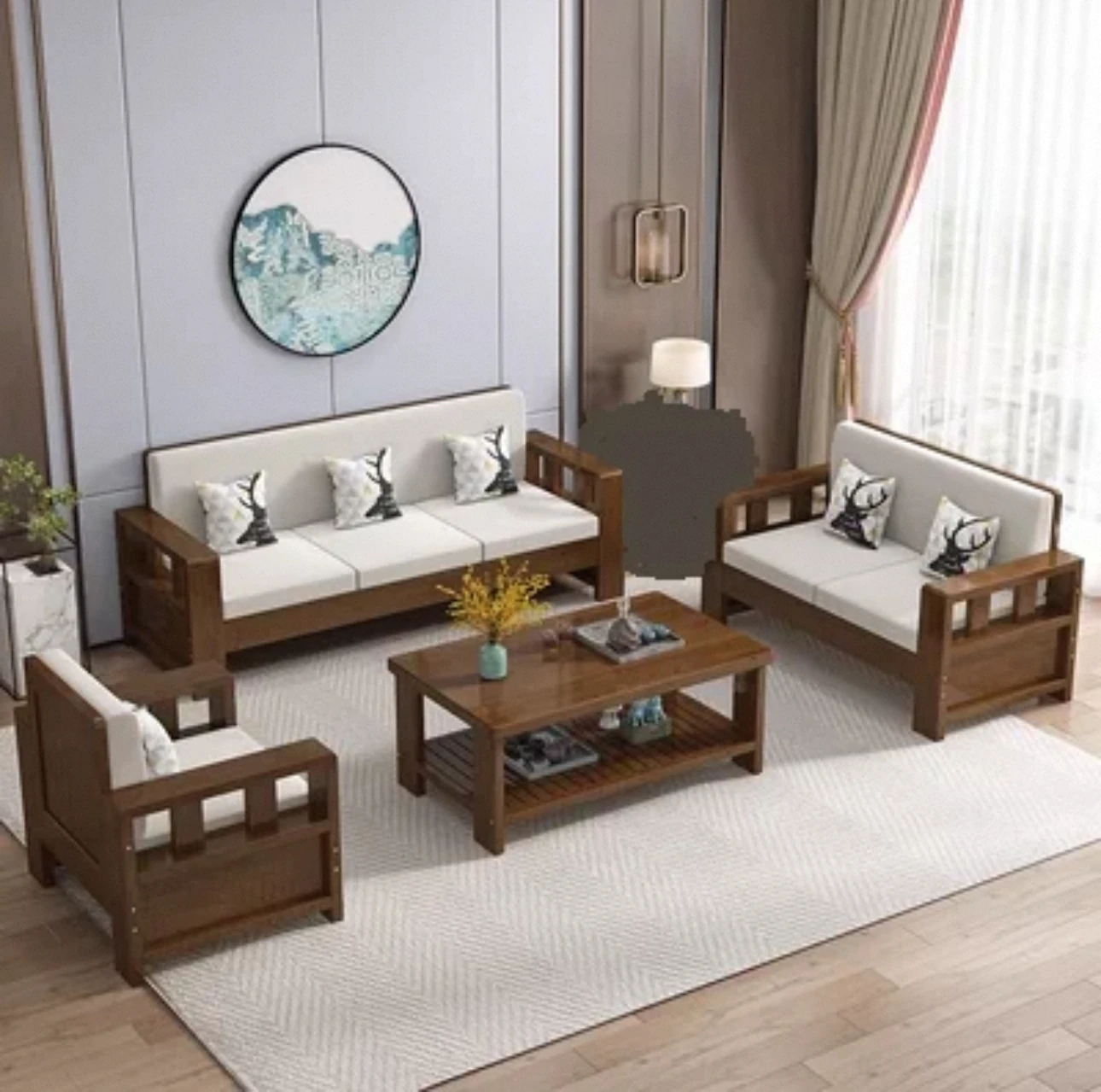 [香港送料無料] 中華風シンプル実木ソファセット - 冬夏両用の高品質な木製家具、経済的な小型住宅に最適!快適なリビング空間を演出します。