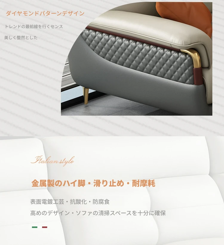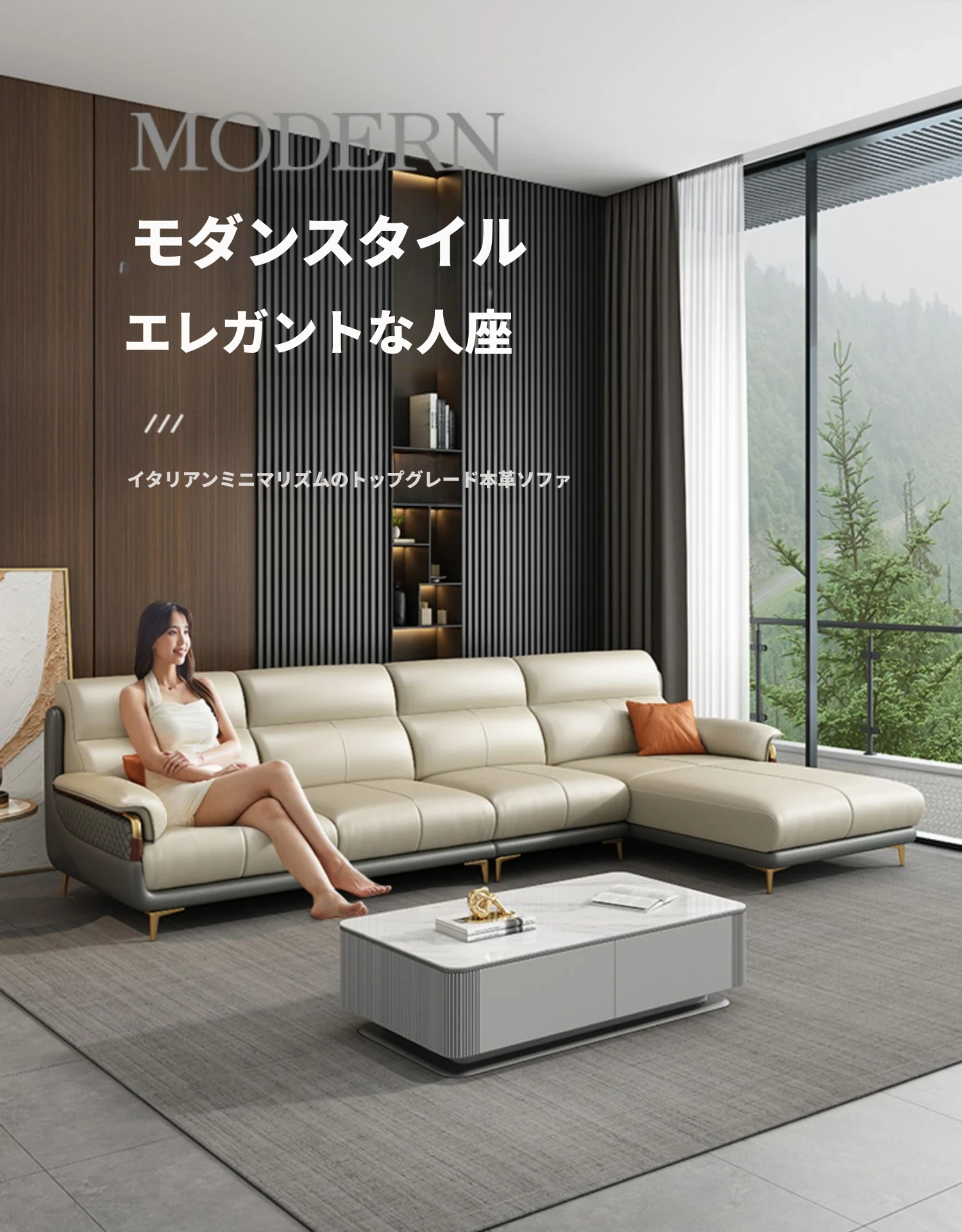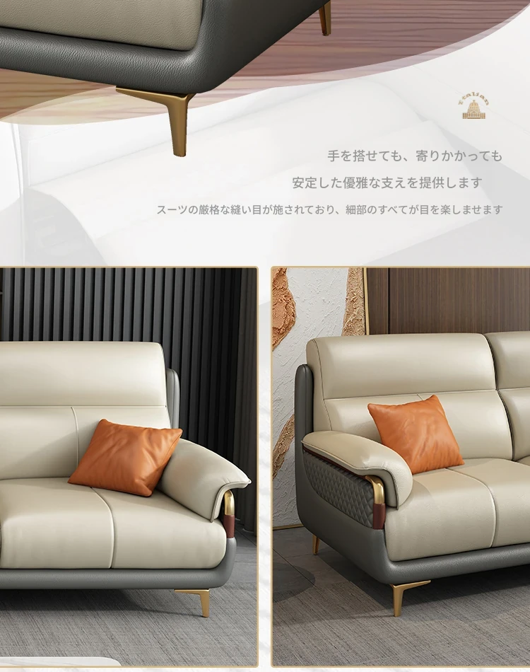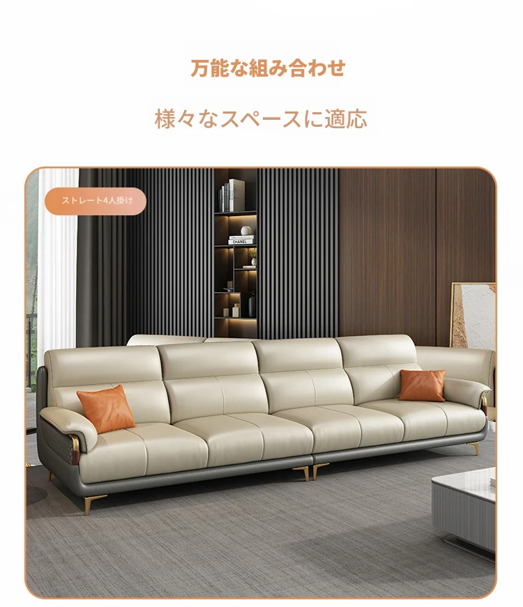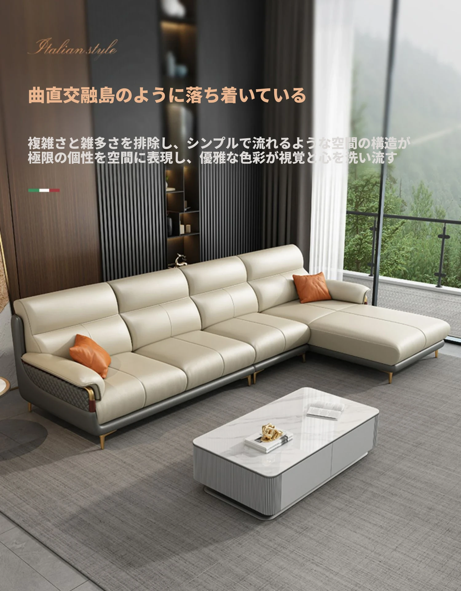 本革ソファ イタリアンミニマルデザイン 高品質トップグレイン牛革 モダンなリビングに最適 北欧スタイルの贅沢なカウチ家具