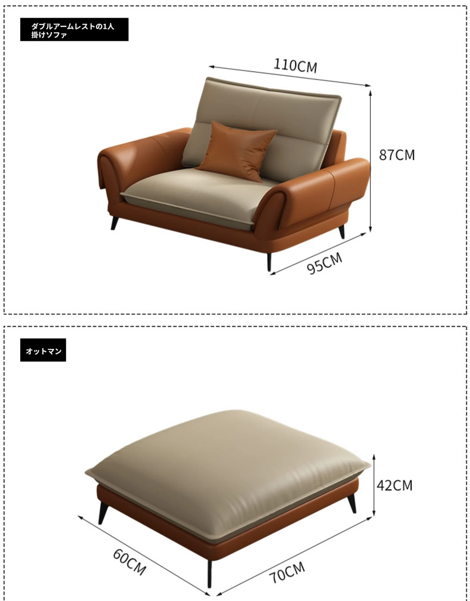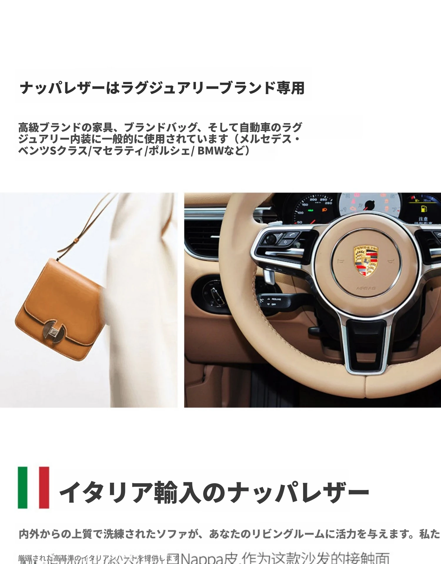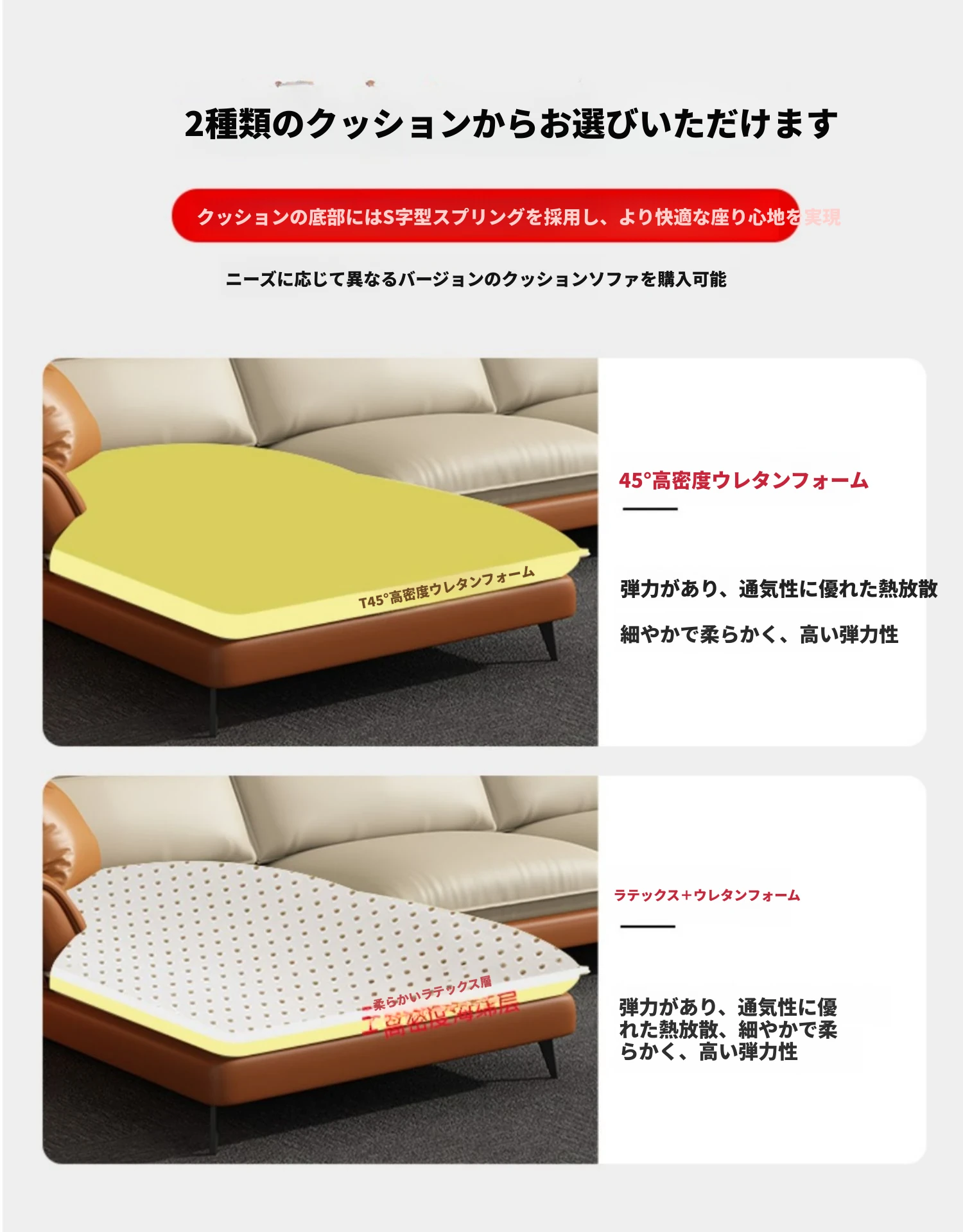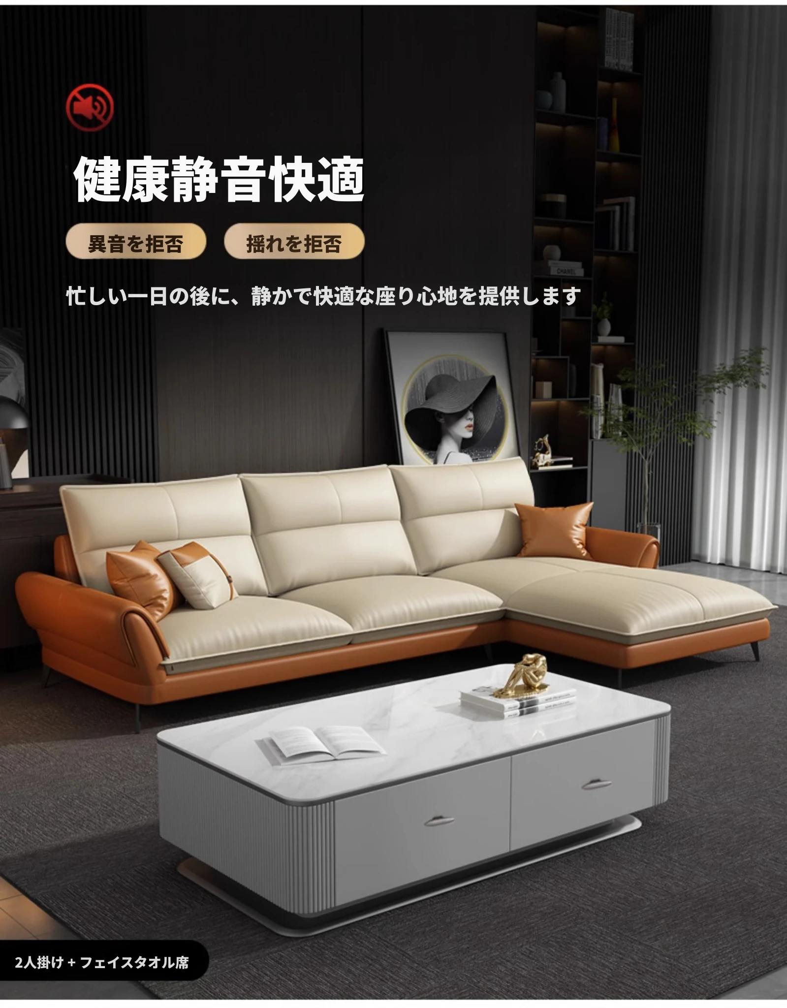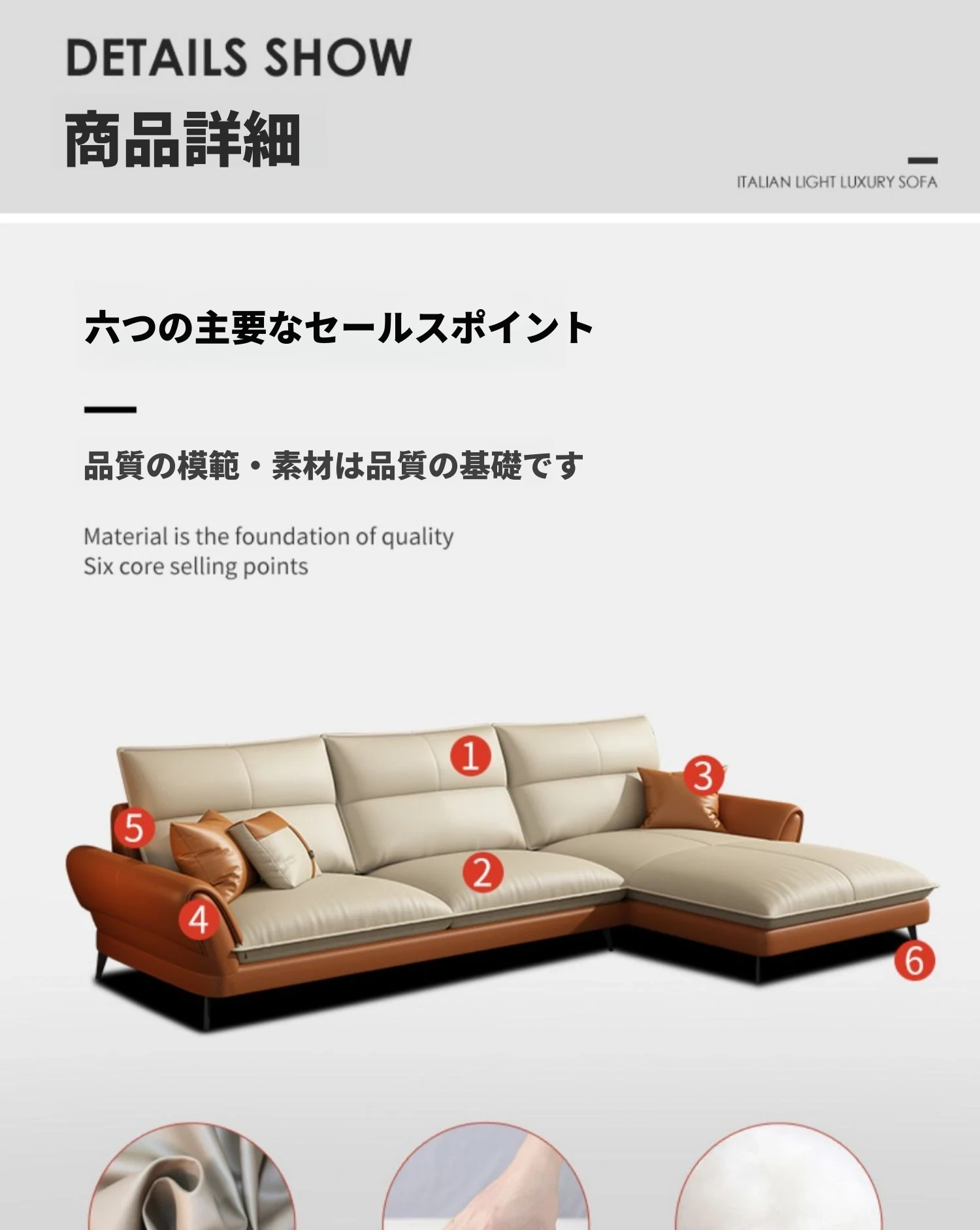 本革製のソファー - 高級な牛革使用、シンプルでモダンなデザイン。北欧スタイルのリビングに最適な三〜四人用のカウチソファー、大型コンビネーションで快適な空間を実現!