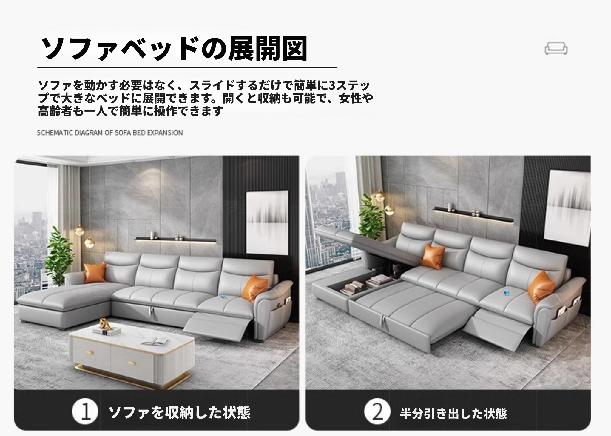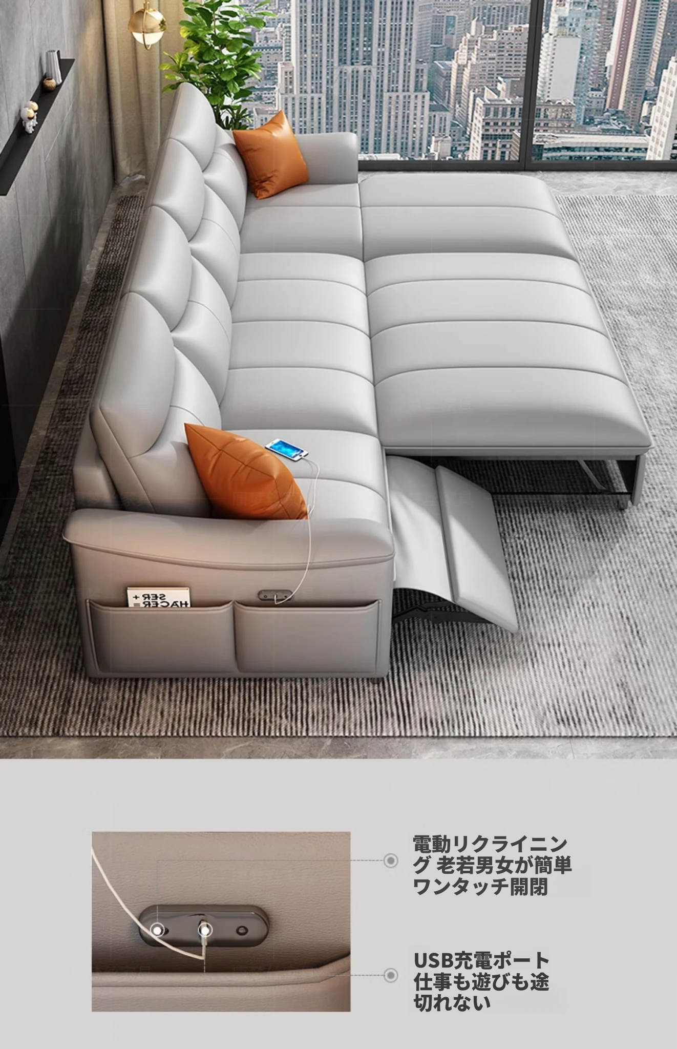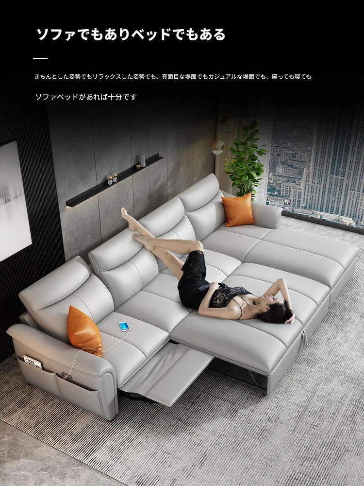 2025年新作!イタリアンデザインの高級レザーソファベッド - リビングに最適な電動多機能ソファ!ベッドにも変形可能で、快適さとスタイルを兼ね備えた一品です。