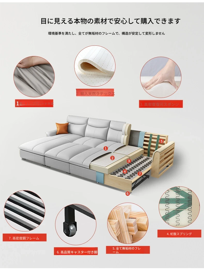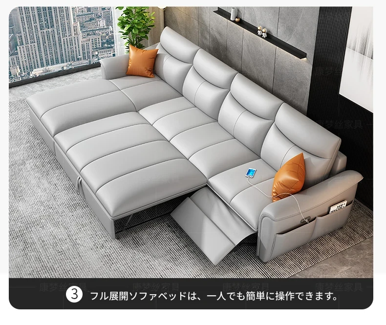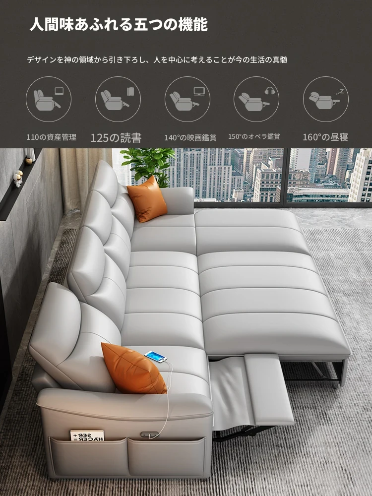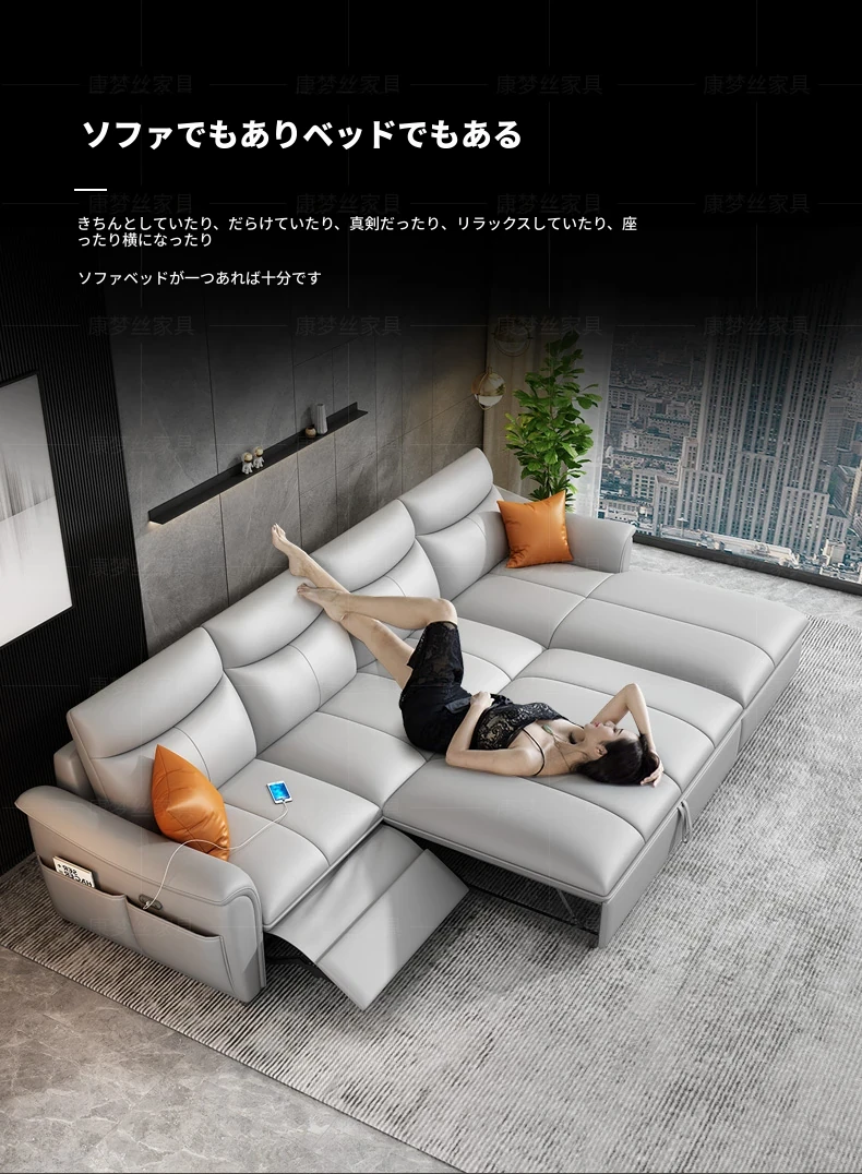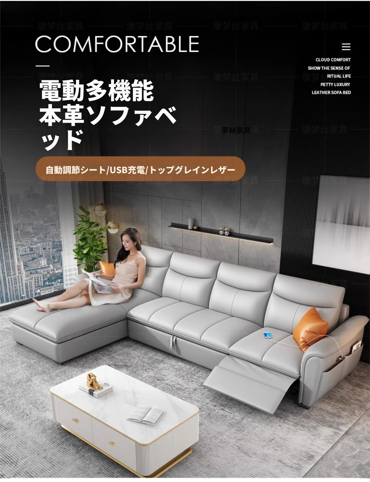 2025年新作!イタリアンデザインの高級レザーソファベッド - リビングに最適な電動多機能ソファ!ベッドにも変形可能で、快適さとスタイルを兼ね備えた一品です。