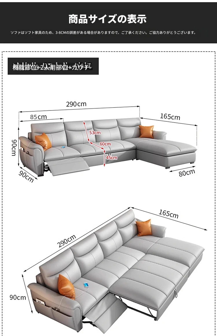 2.9メートル単人用機能付き+二人+貴妃ソファ