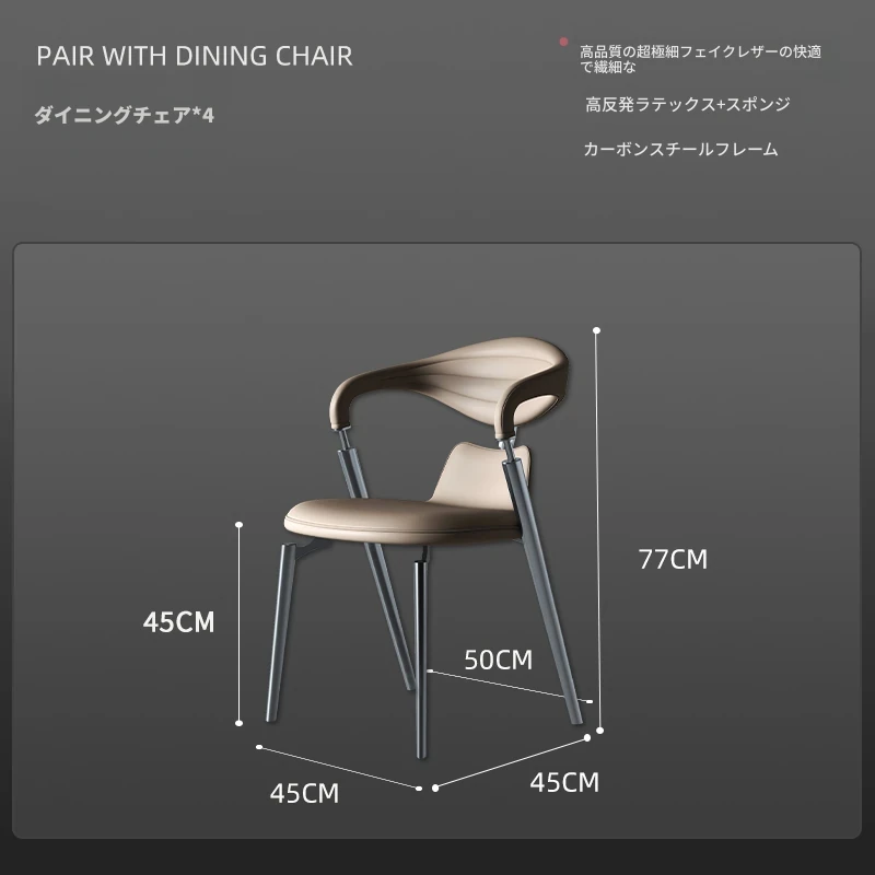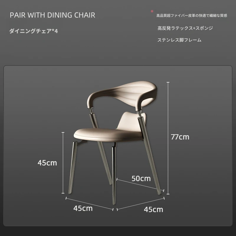 超極細繊維レザー+ラテックス【円満ダイニングチェア】*4 厚手304ステンレス鋼フレーム