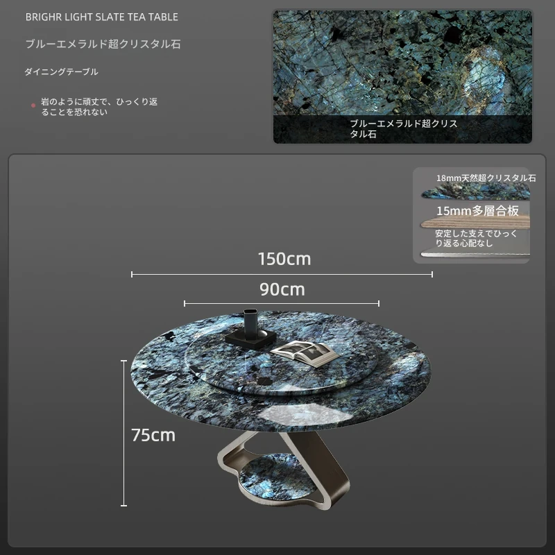 150cm+90cmターンテーブル付き【グレー・チタン】ダイニングテーブル