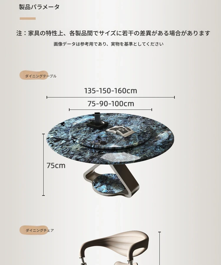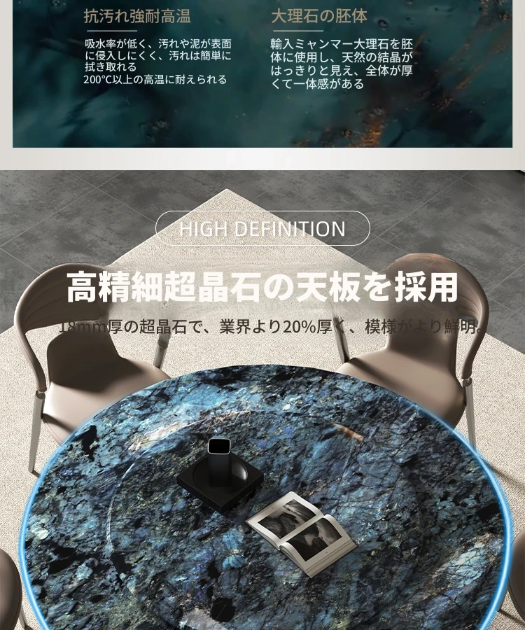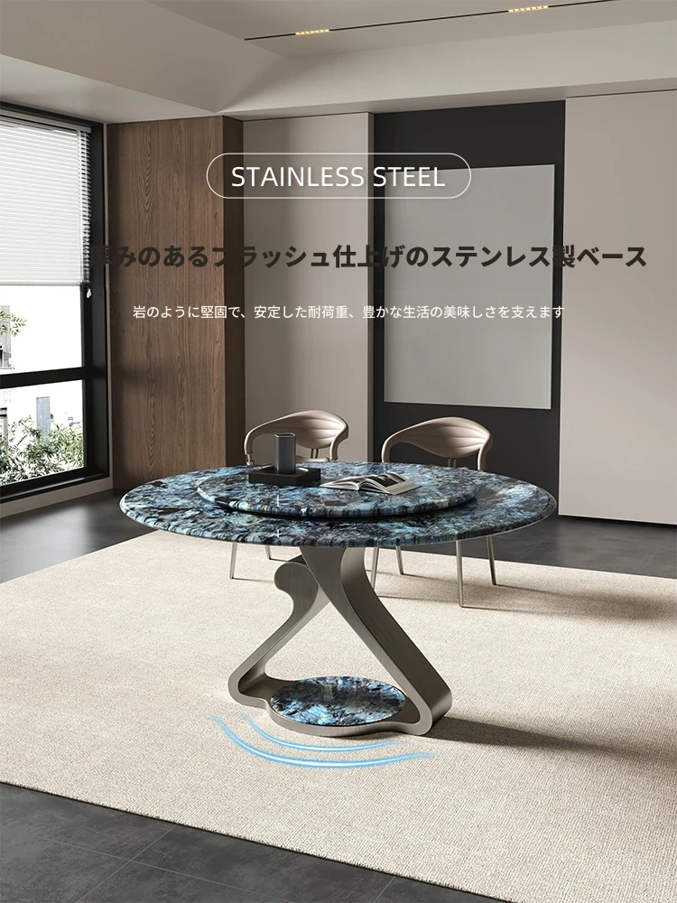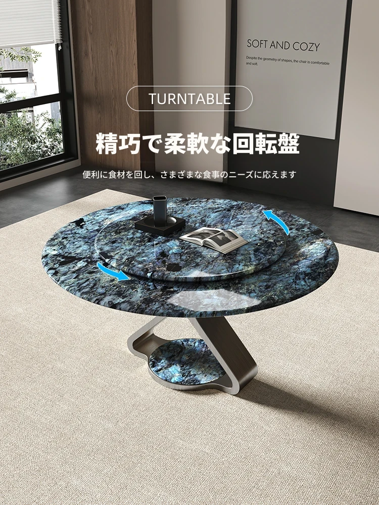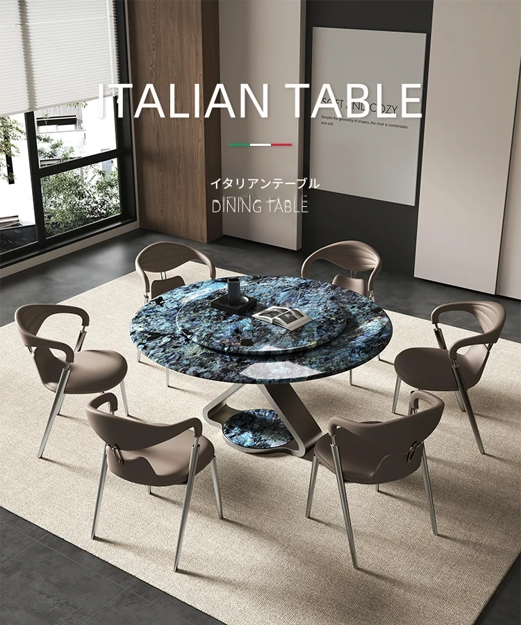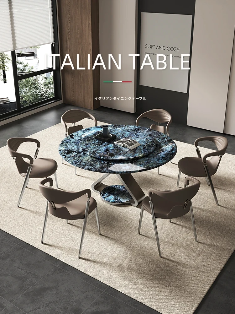 モダンでシンプルな大理石ラウンドダイニングテーブル - 高級感溢れるイタリアンスタイル、広々としたリビングにぴったりの洗練されたデザイン!家庭用としても最適です。