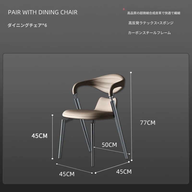 超極細繊維レザー+ラテックス【円満】ダイニングチェア*6 カーボンスチール+パール塗装フレーム