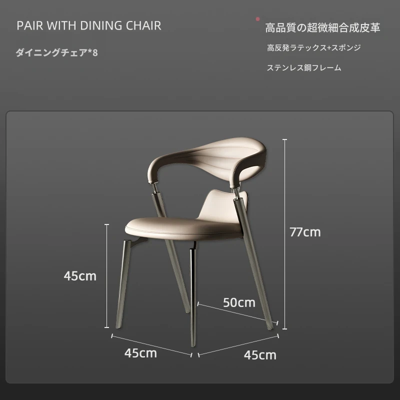 超極細繊維レザー+ラテックス【円満ダイニングチェア】*8 厚手304ステンレス鋼フレーム