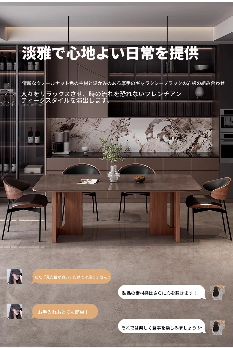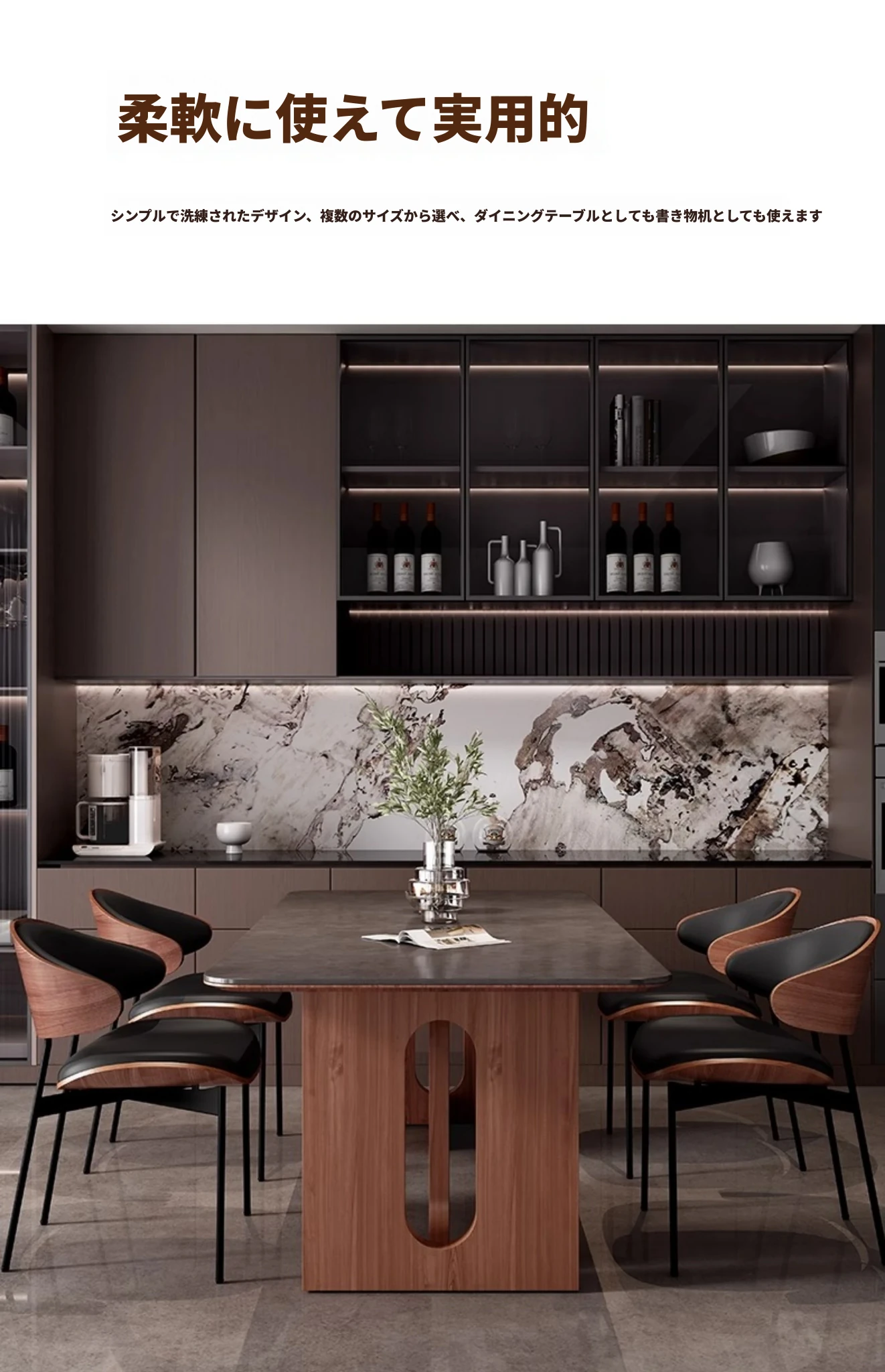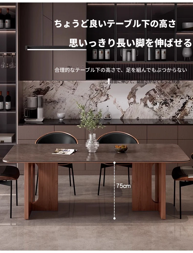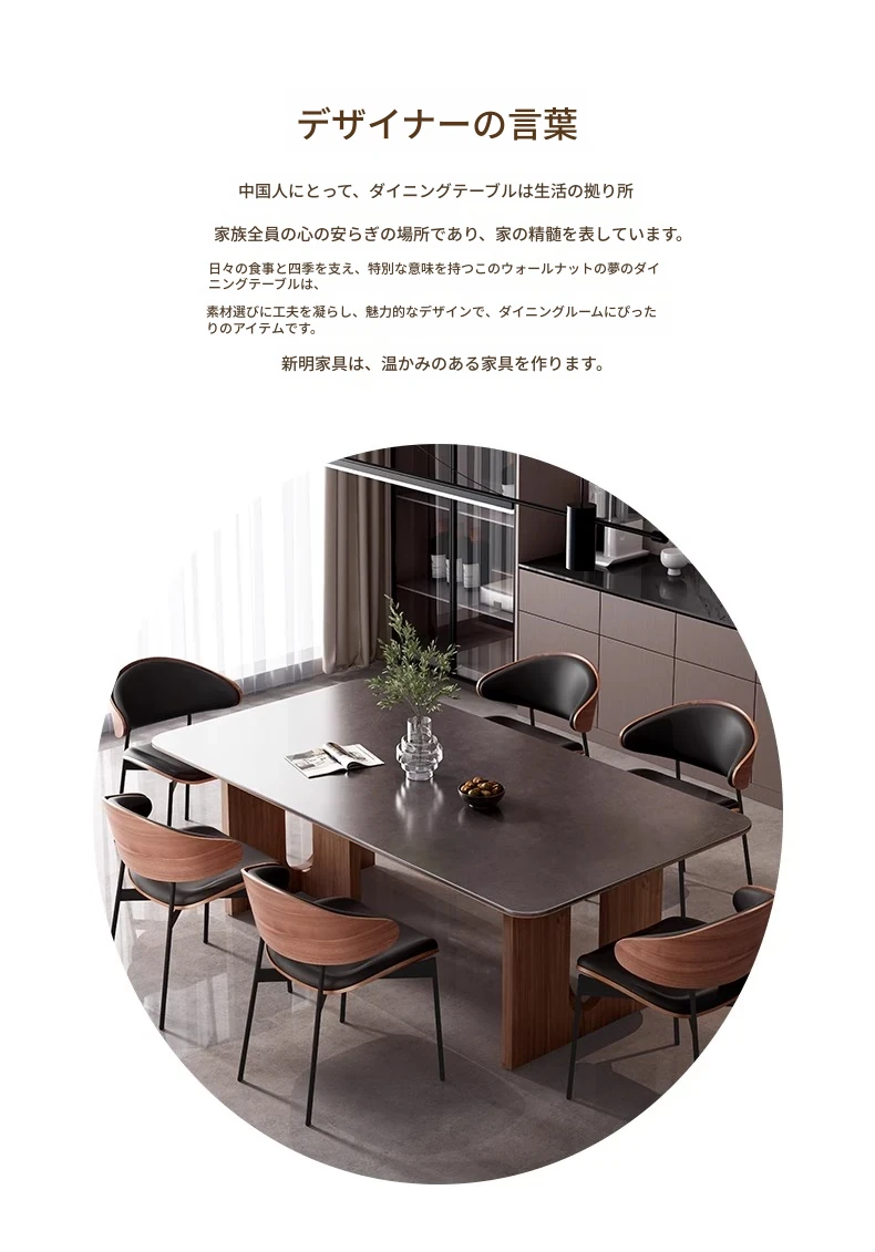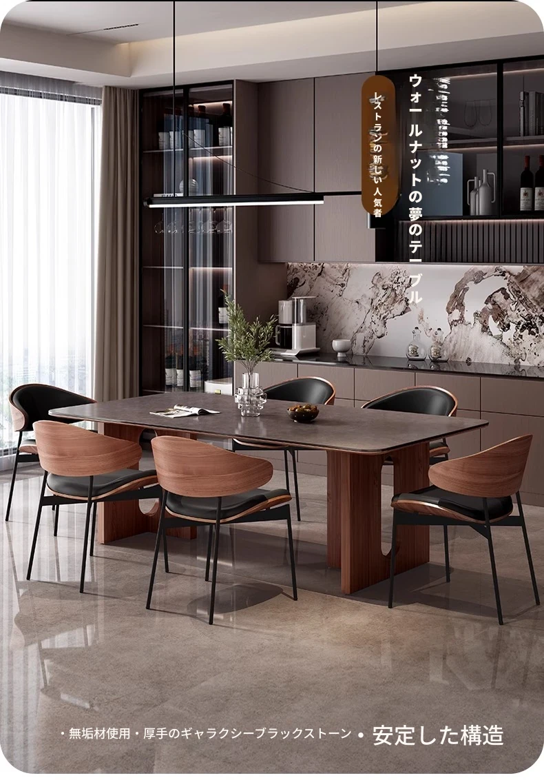 2025年新款・レトロな無垢材ロックプレートダイニングテーブル・リビングルーム用・家庭にぴったり・ライトラグジュアリーなモダンシンプル・イタリアンウォールナットカラーの食卓で、特別なひとときをお楽しみください!