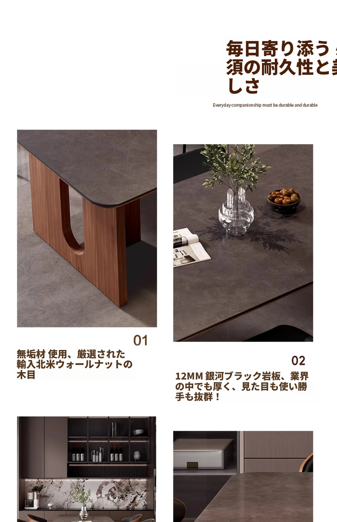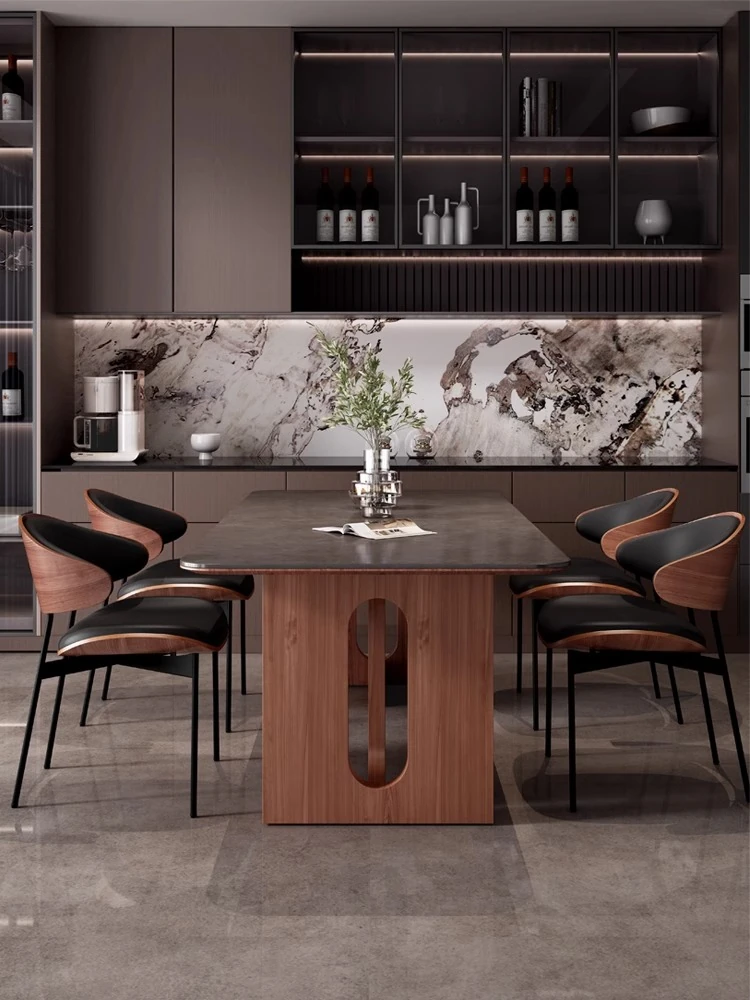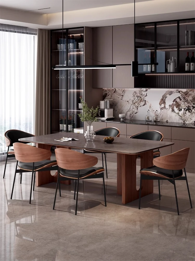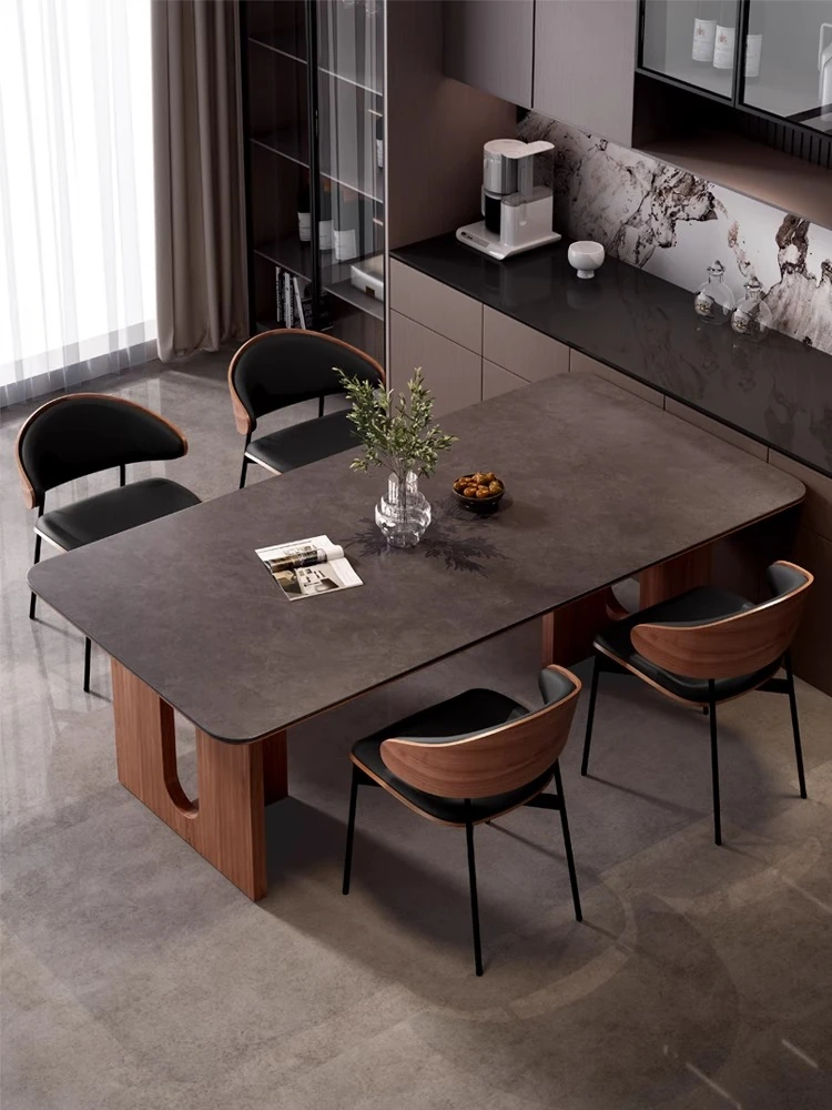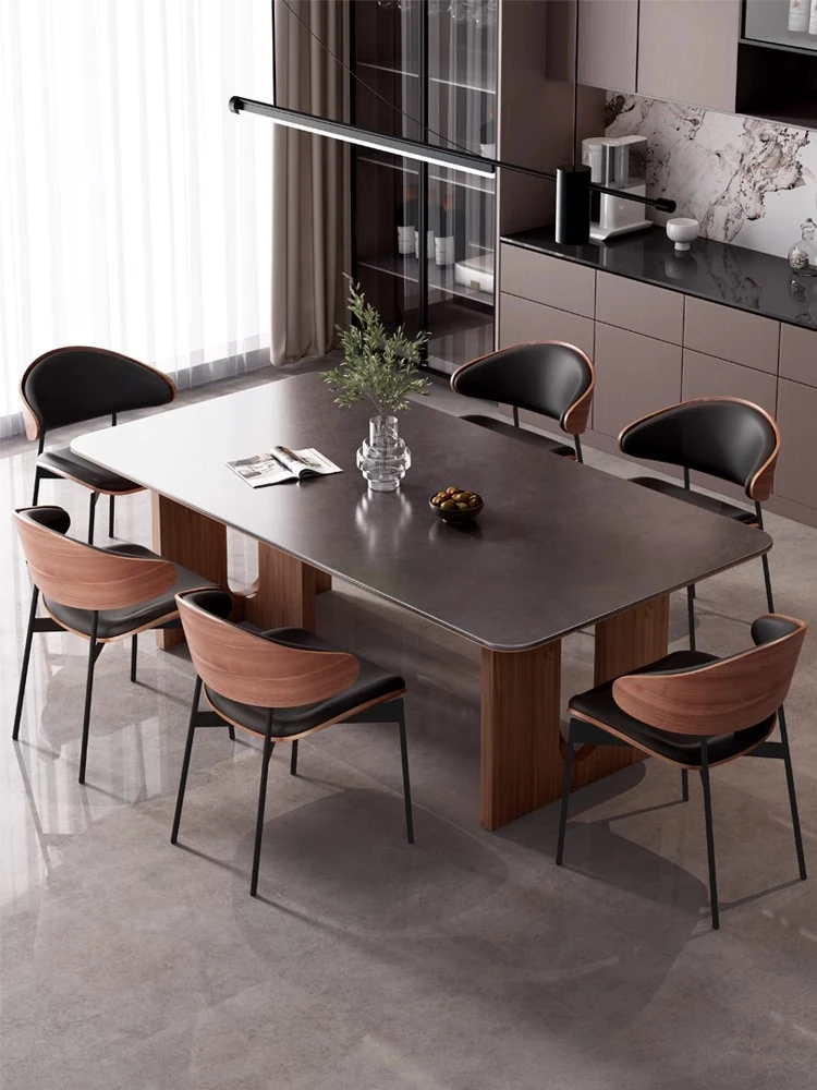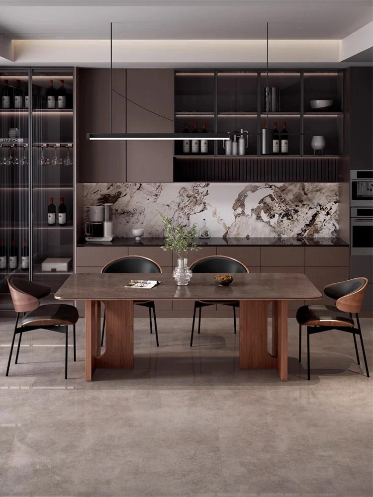 2025年新款・レトロな無垢材ロックプレートダイニングテーブル・リビングルーム用・家庭にぴったり・ライトラグジュアリーなモダンシンプル・イタリアンウォールナットカラーの食卓で、特別なひとときをお楽しみください!