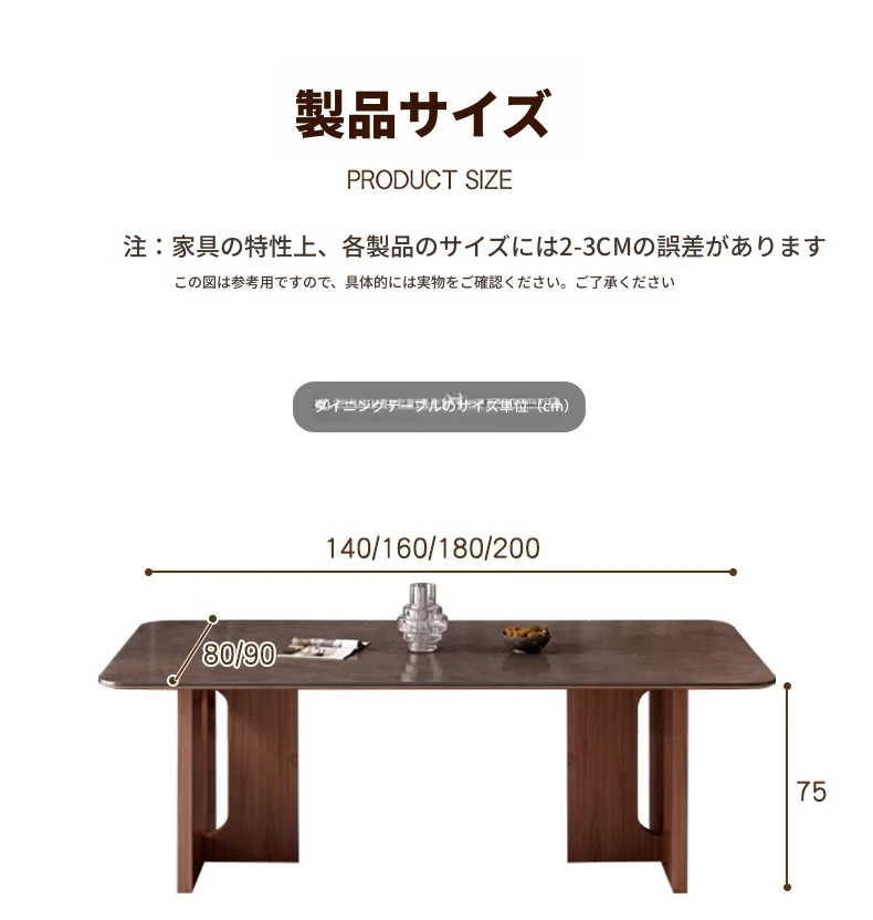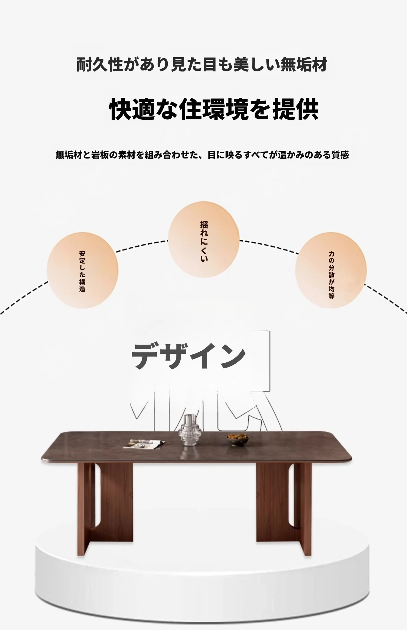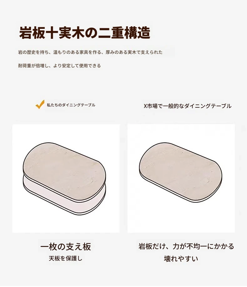 160*80【イノ】ストーンプレート+無垢材ダイニングテーブル