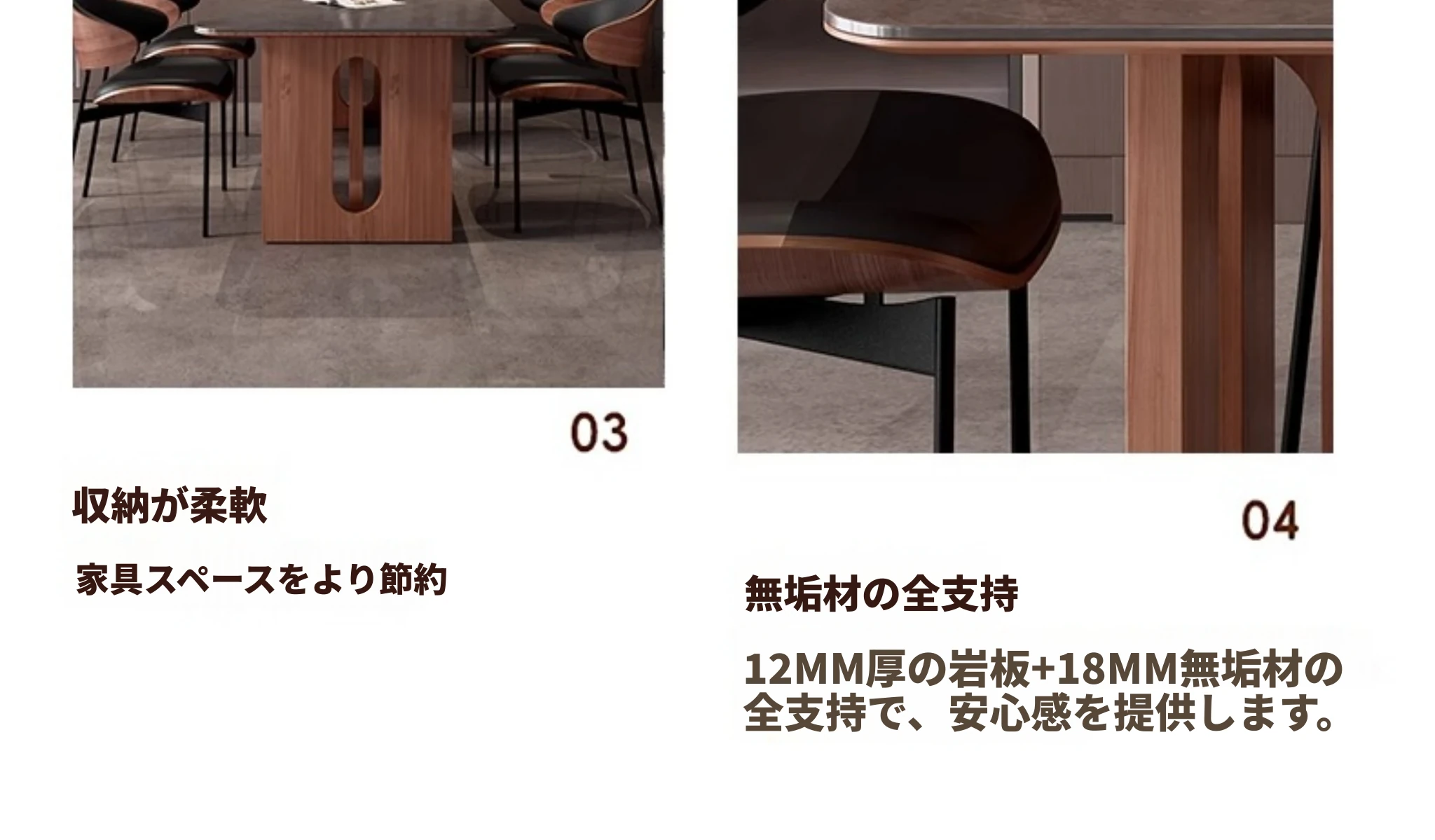 130*80【イノ】ストーンプレート+無垢材ダイニングテーブル