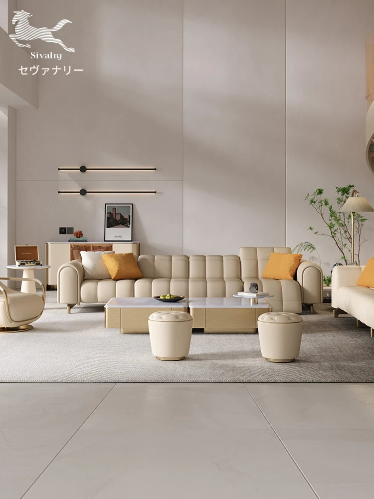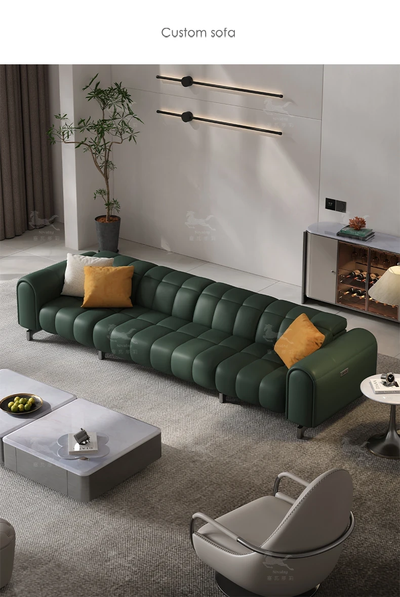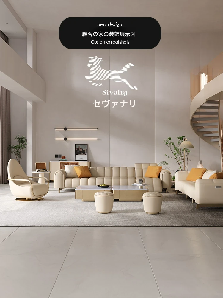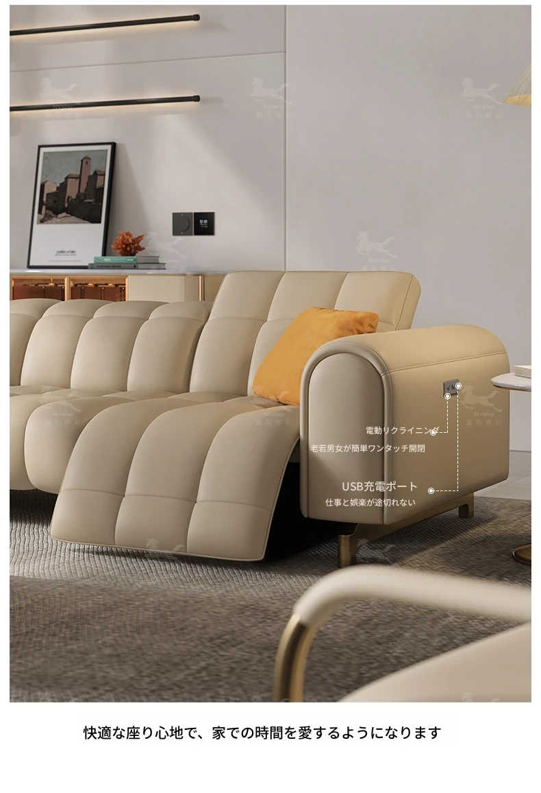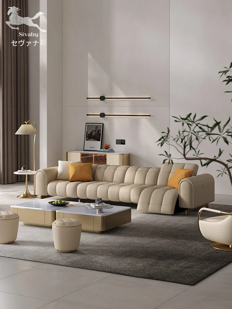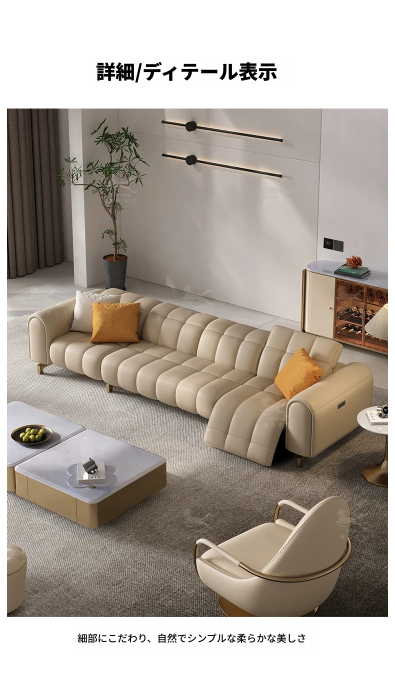 セヴァナリ高級電動ソファ・モダンなリビングルームにぴったりの軽奢直線型ソファセット・イタリアン本革使用で贅沢なひとときを提供します!