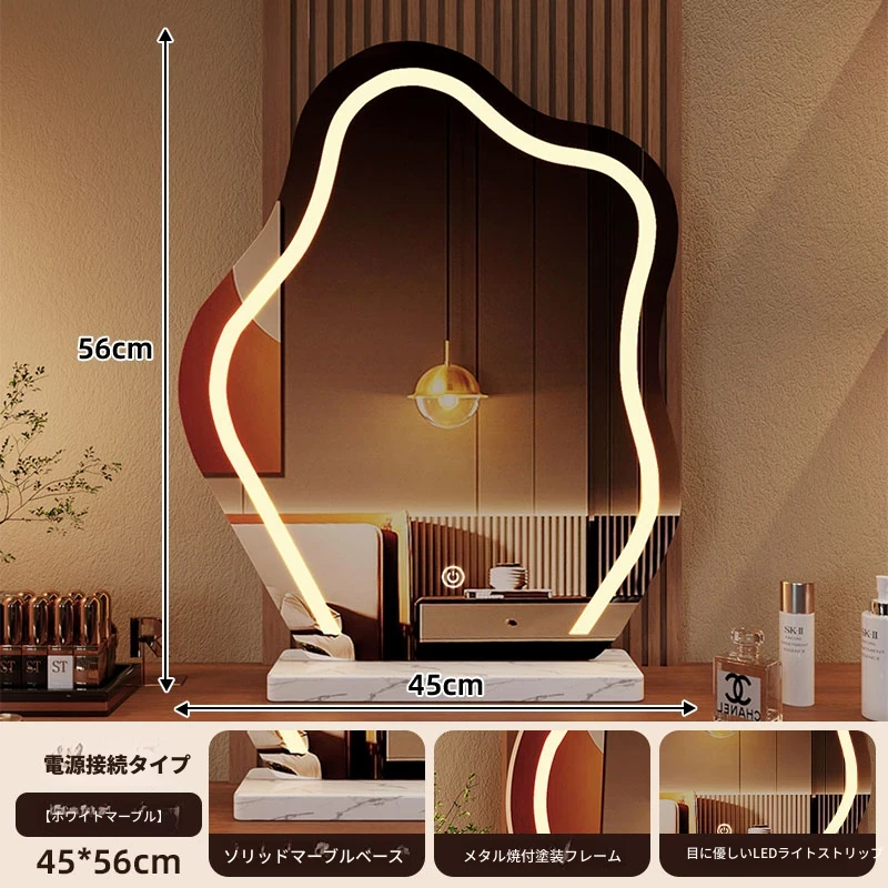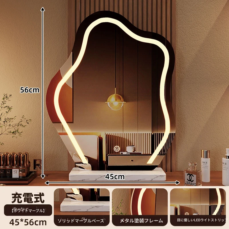 【充電・電源両用モデル】クラウドスマートミラー45*56パールホワイト(天然大理石)