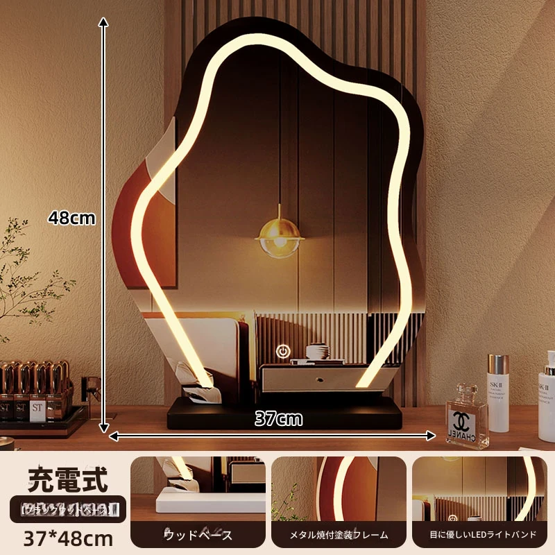【充電・電源両用モデル】クラウドスマートミラー37*48ラグジュアリーブラック(木製台座)