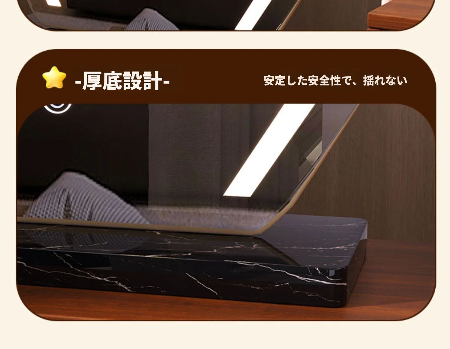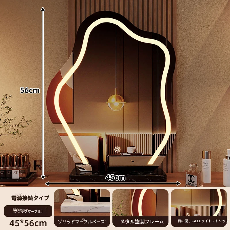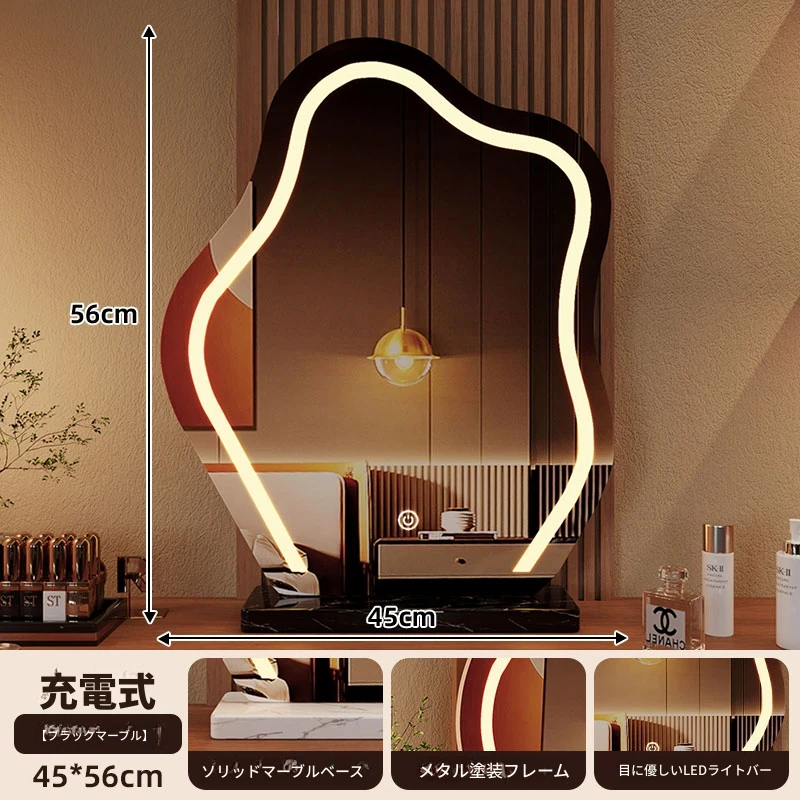 【充電・電源両用モデル】クラウドスマートミラー45*56ラグジュアリーブラック(天然大理石)