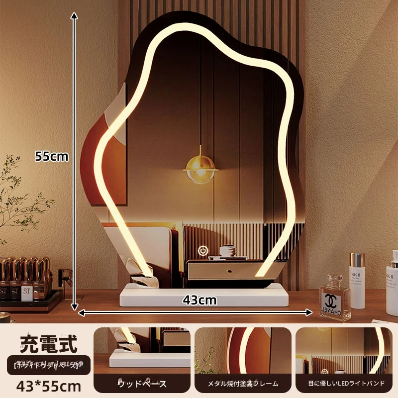 【充電・電源両用モデル】クラウドスマートミラー43*58パールホワイト(木製台座)
