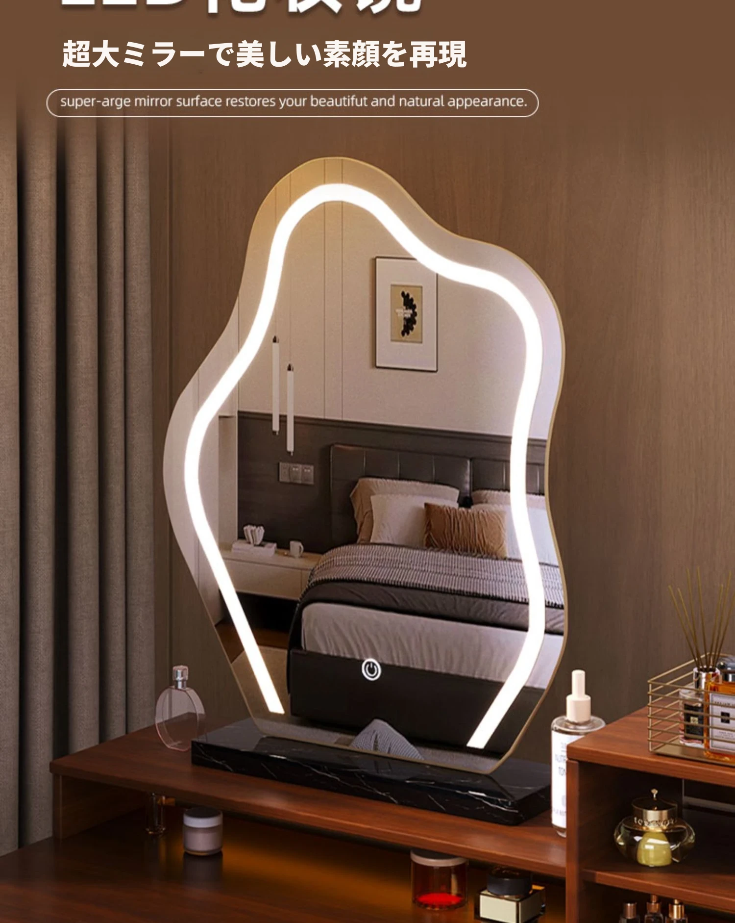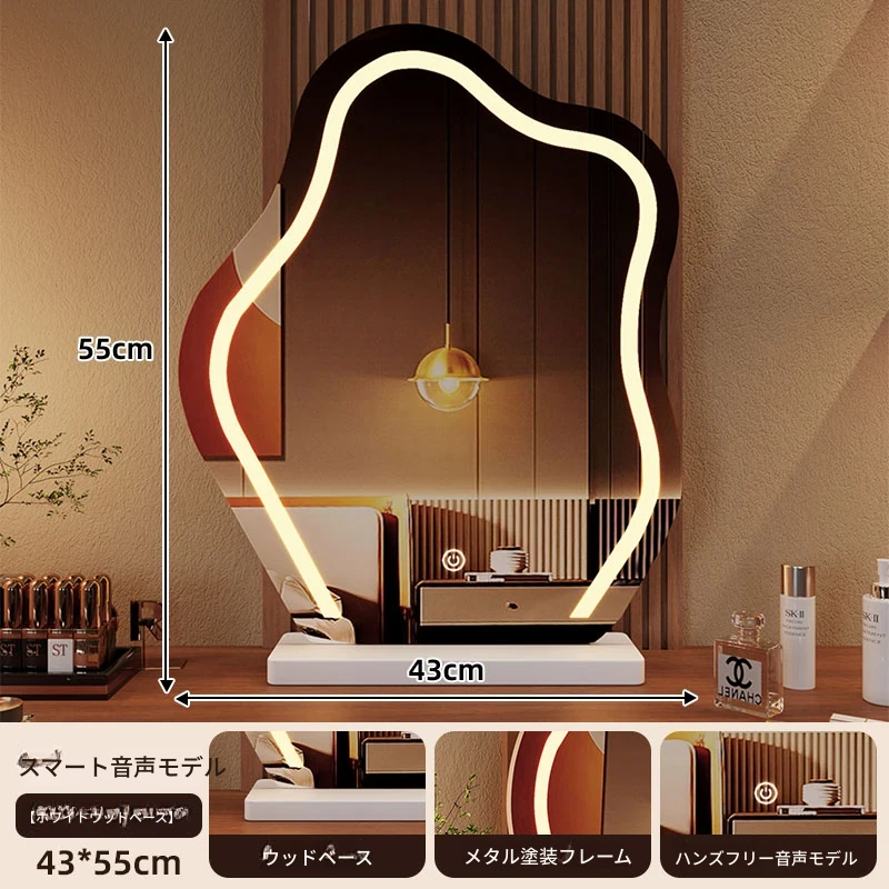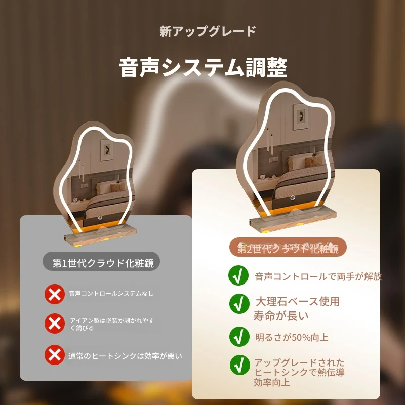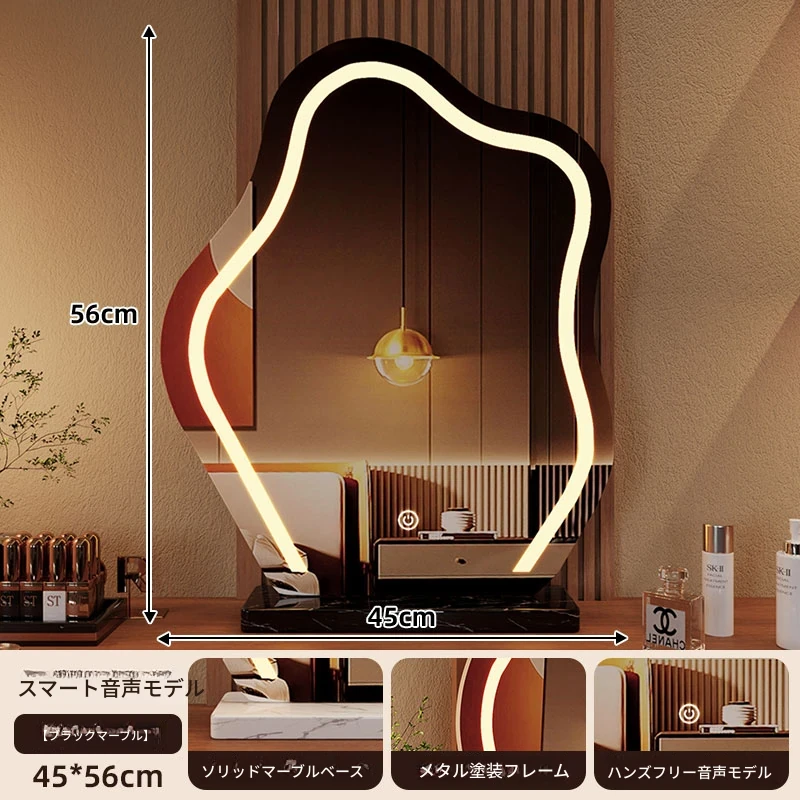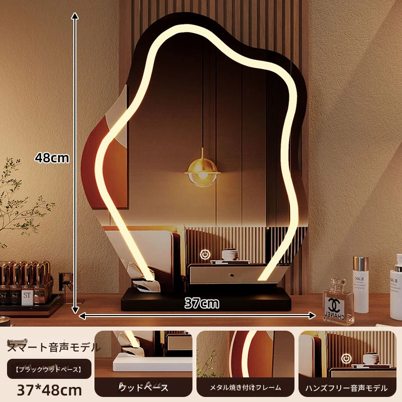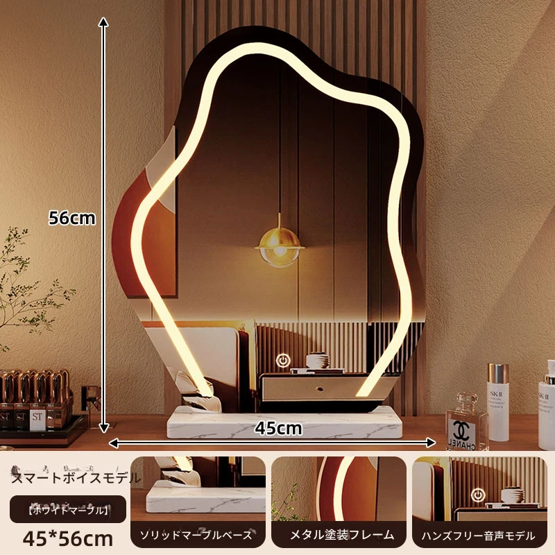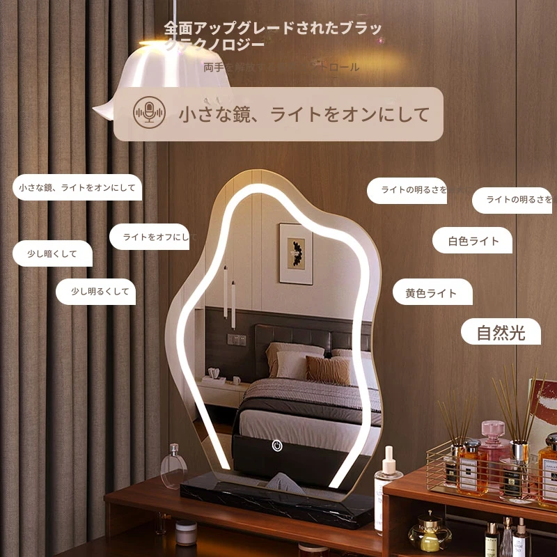 スマートクラウドミラー・デスクトップ化粧鏡 LEDライト付き・ラグジュアリーなアップグレード版・音声操作対応の新感覚メイクアップミラー!あなたの美を引き立てる、スタイリッシュなアイテムです。