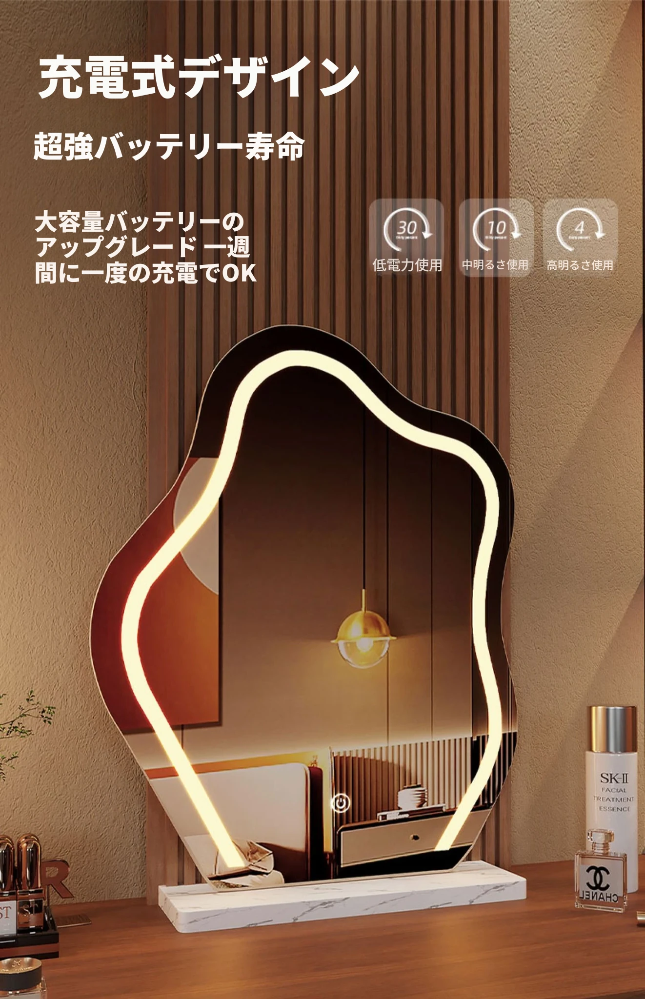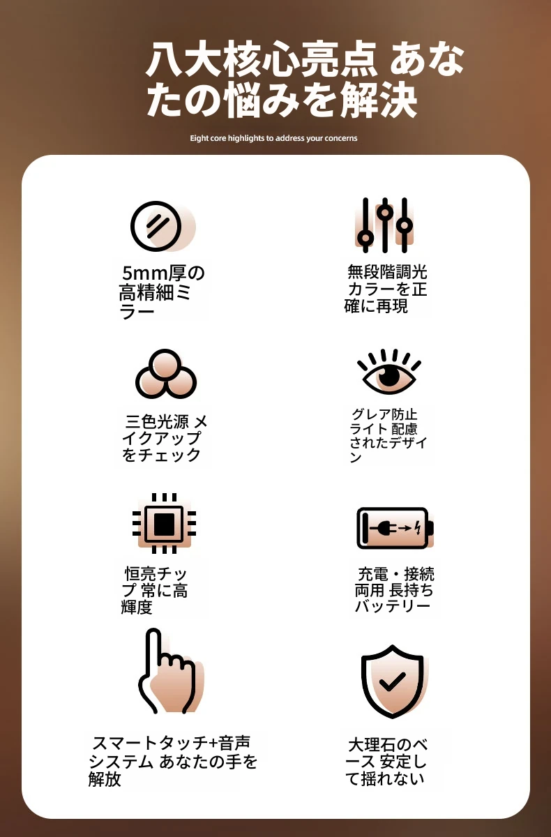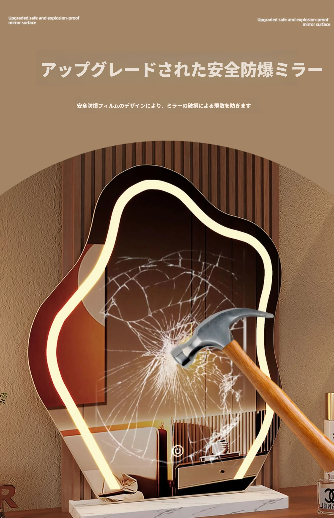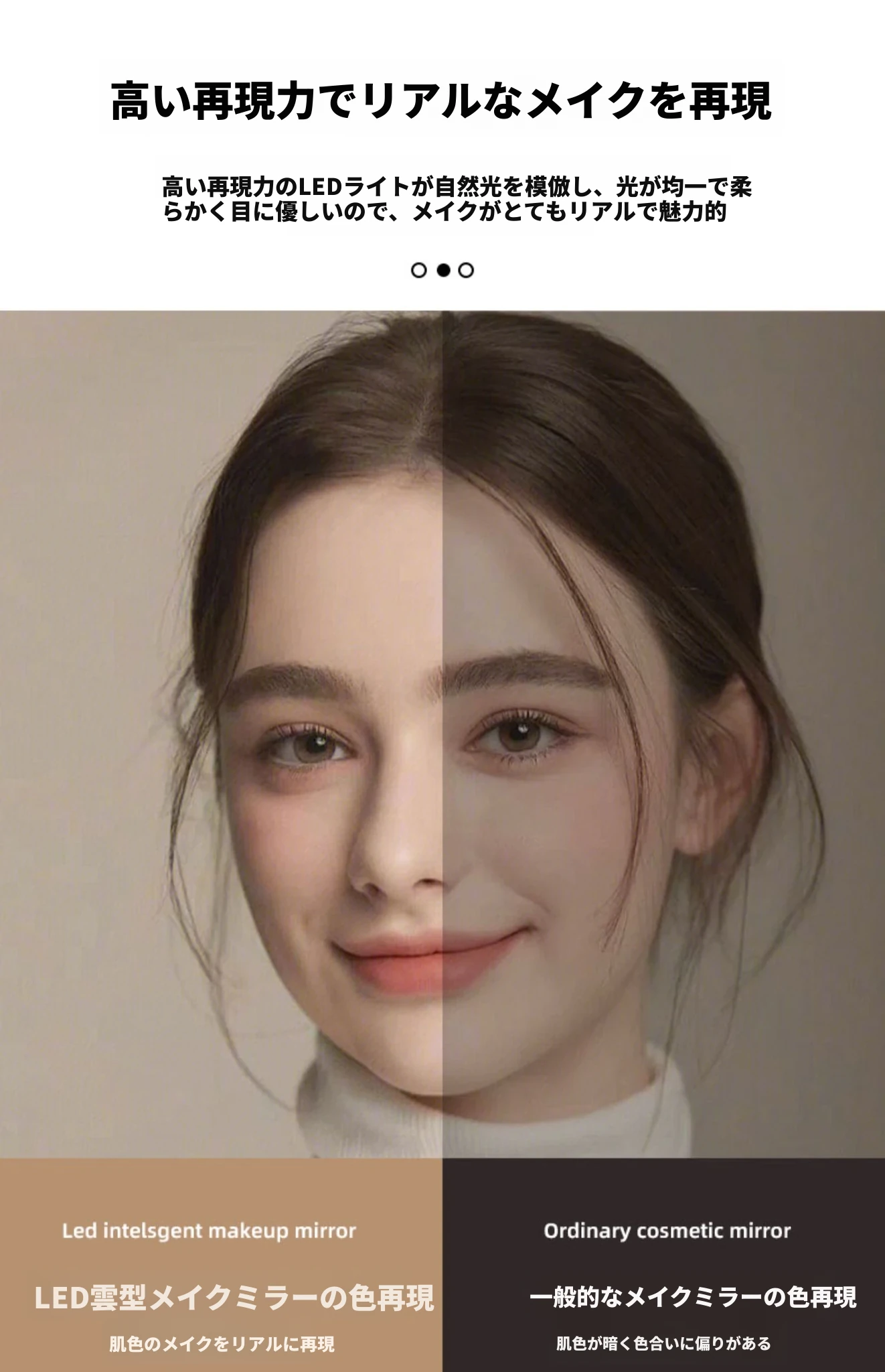 スマートクラウドミラー・デスクトップ化粧鏡 LEDライト付き・ラグジュアリーなアップグレード版・音声操作対応の新感覚メイクアップミラー!あなたの美を引き立てる、スタイリッシュなアイテムです。