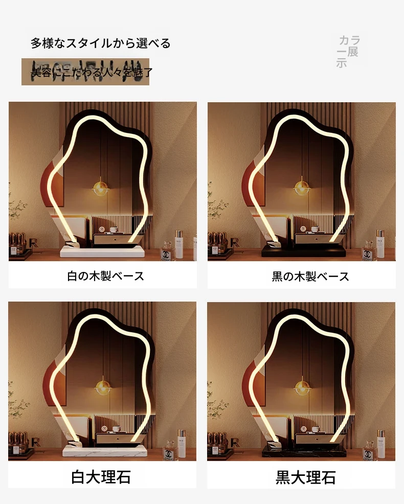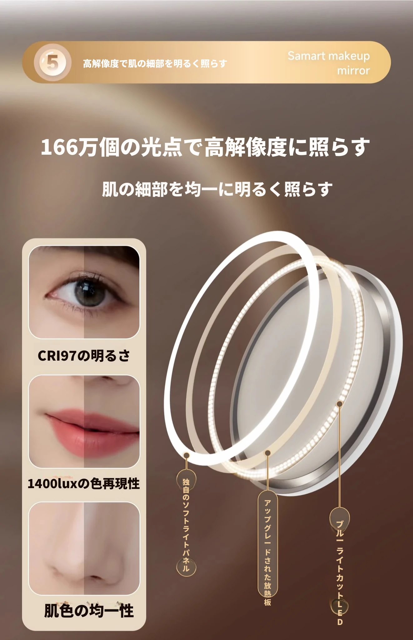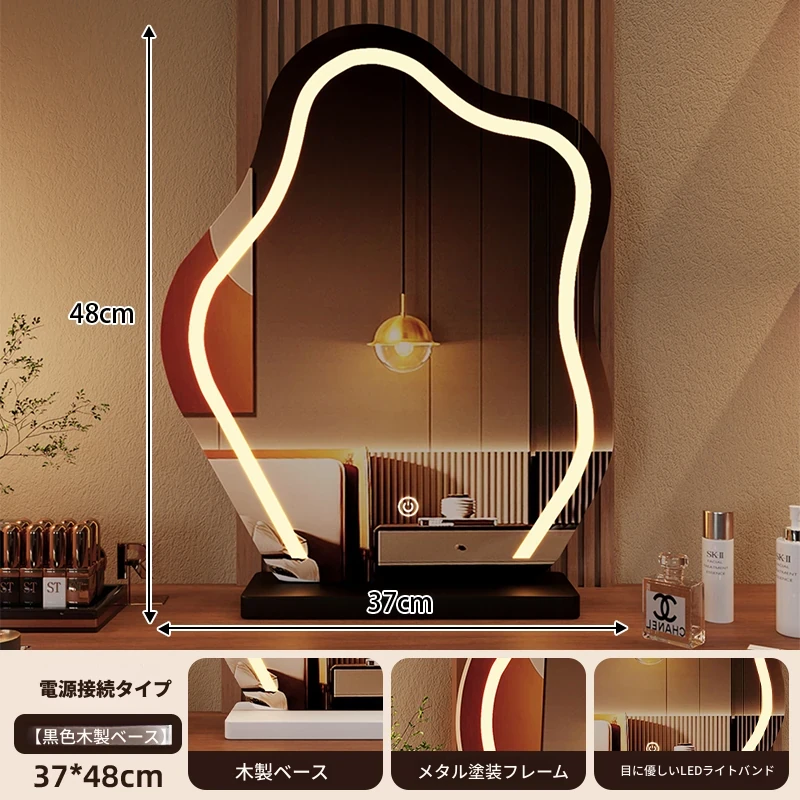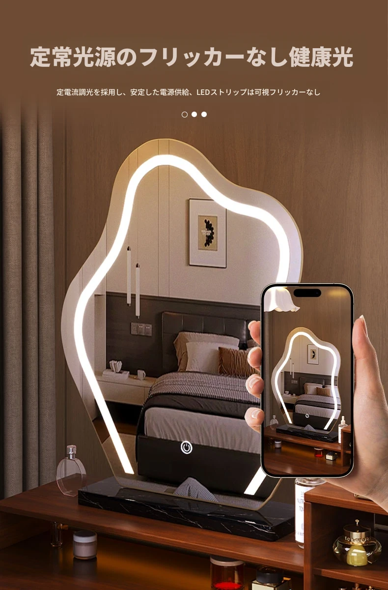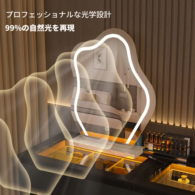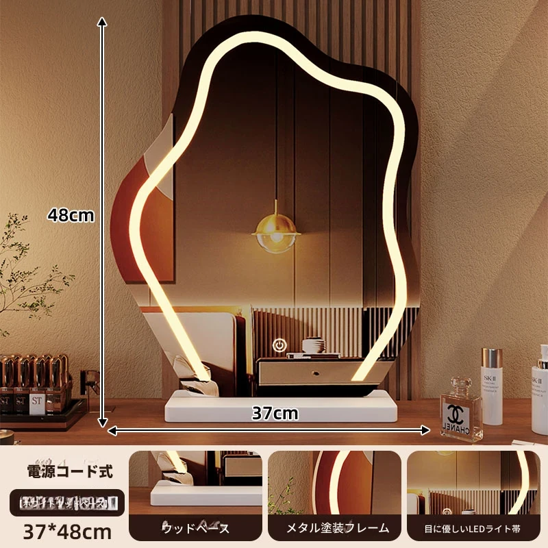 スマートクラウドミラー・デスクトップ化粧鏡 LEDライト付き・ラグジュアリーなアップグレード版・音声操作対応の新感覚メイクアップミラー!あなたの美を引き立てる、スタイリッシュなアイテムです。