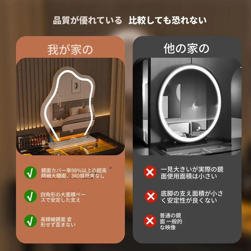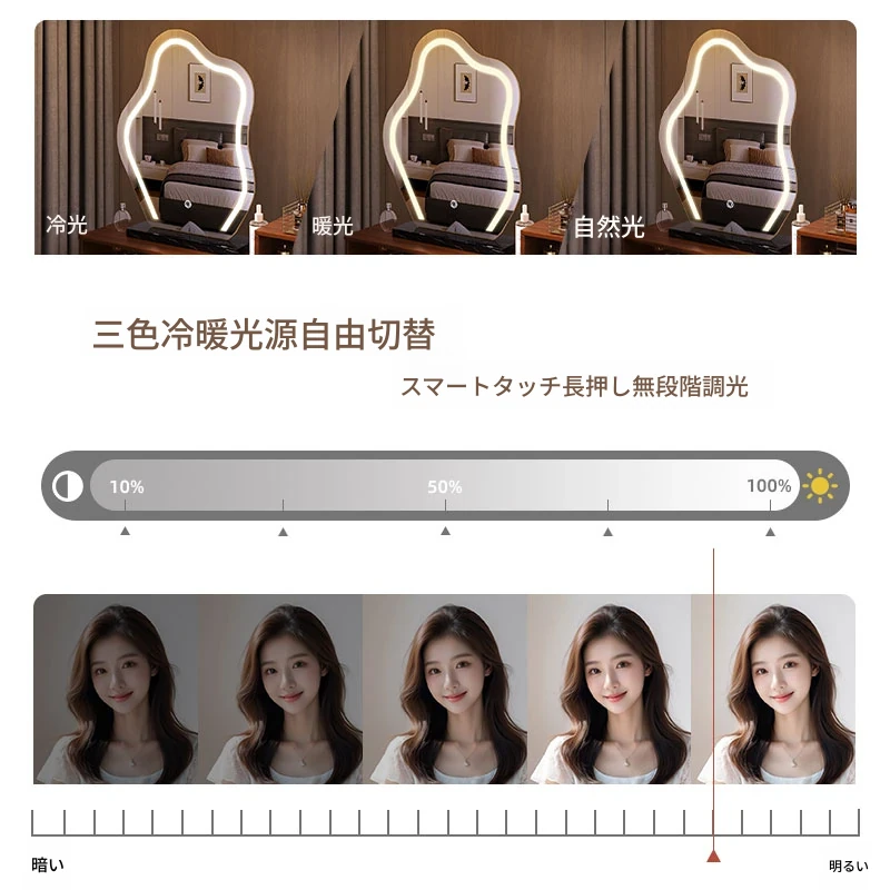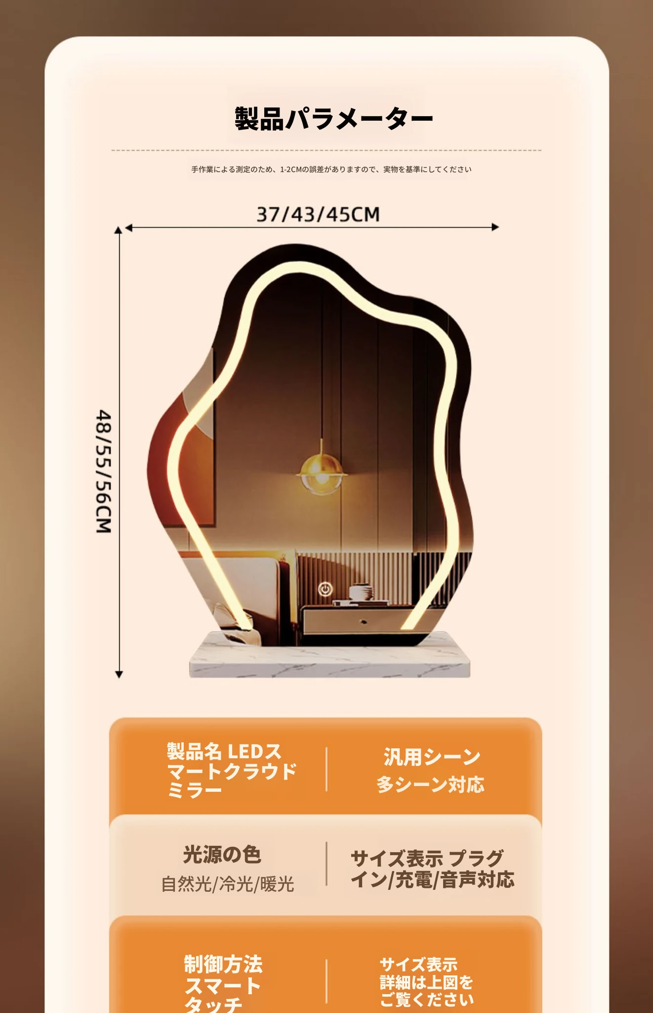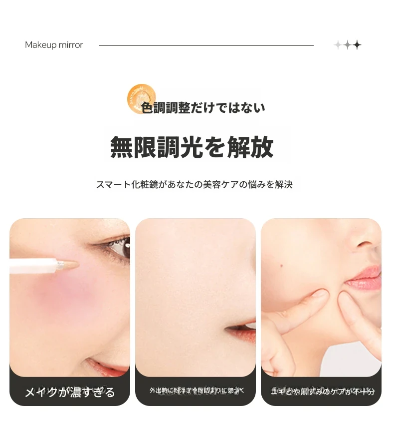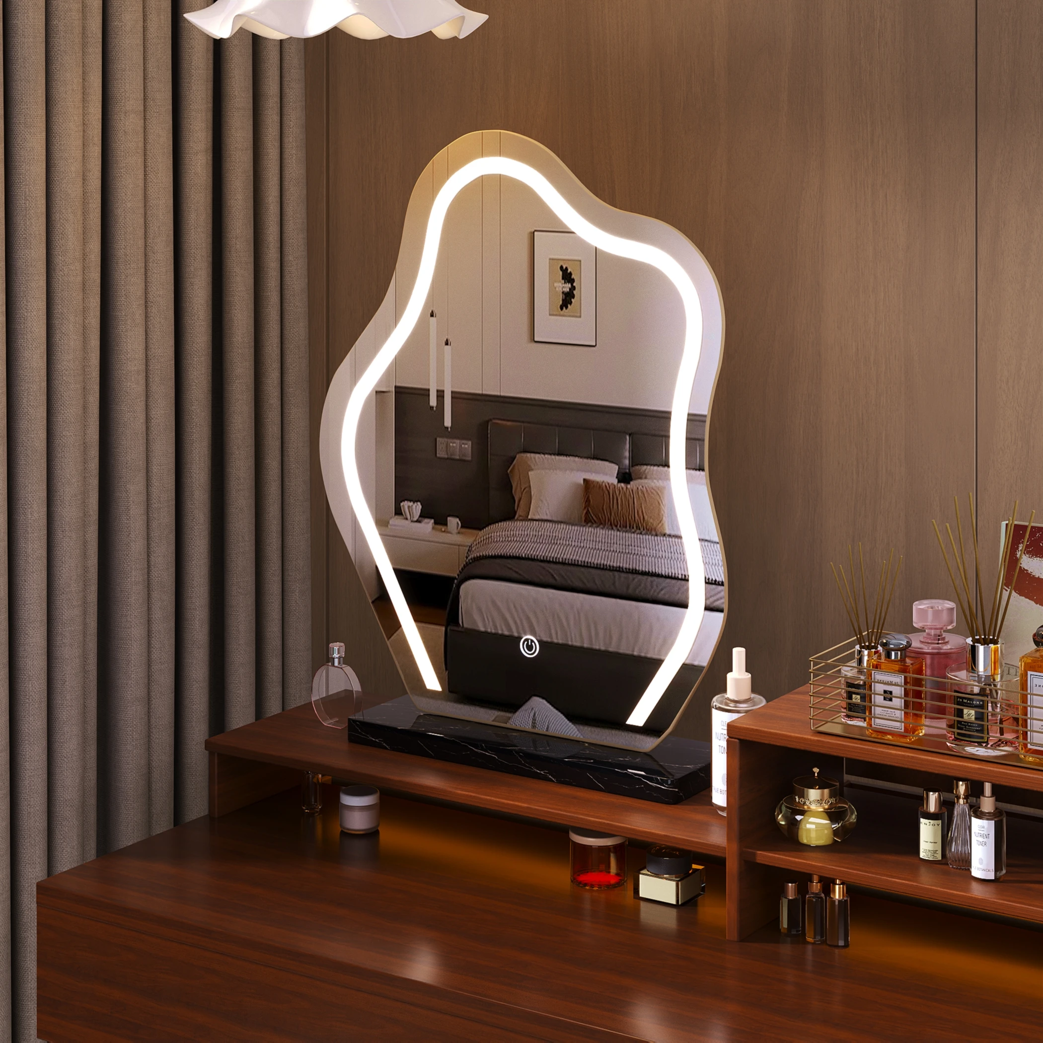 スマートクラウドミラー・デスクトップ化粧鏡 LEDライト付き・ラグジュアリーなアップグレード版・音声操作対応の新感覚メイクアップミラー!あなたの美を引き立てる、スタイリッシュなアイテムです。