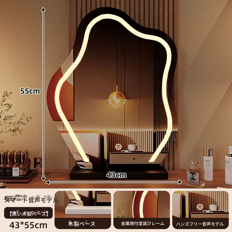 【音声モデル】クラウドスマートミラー43*55ラグジュアリーブラック(木製台座)