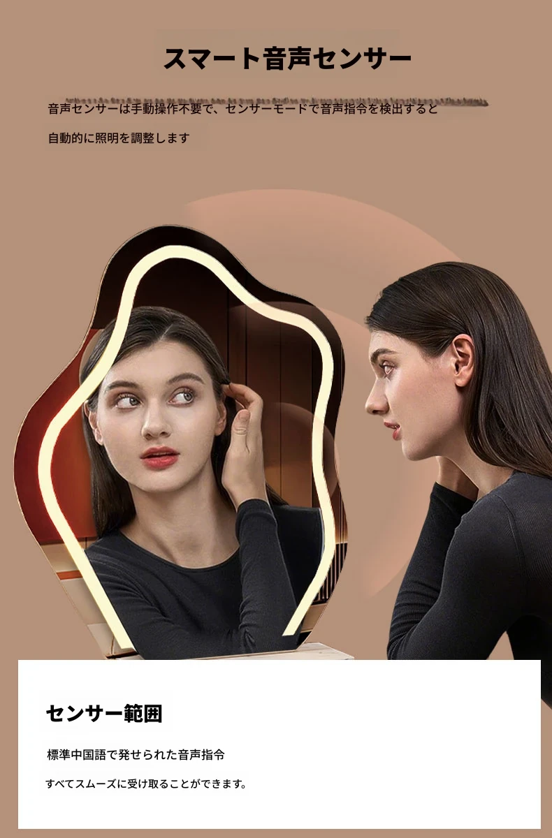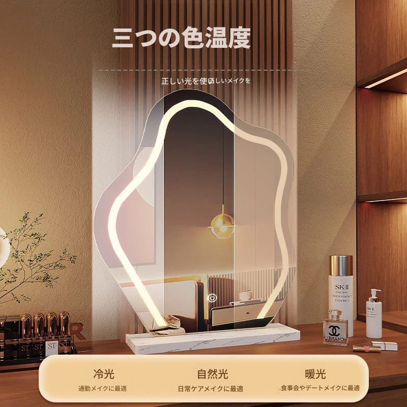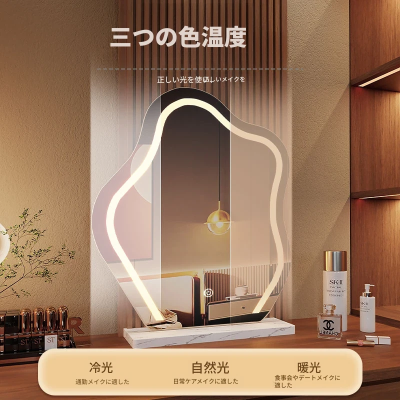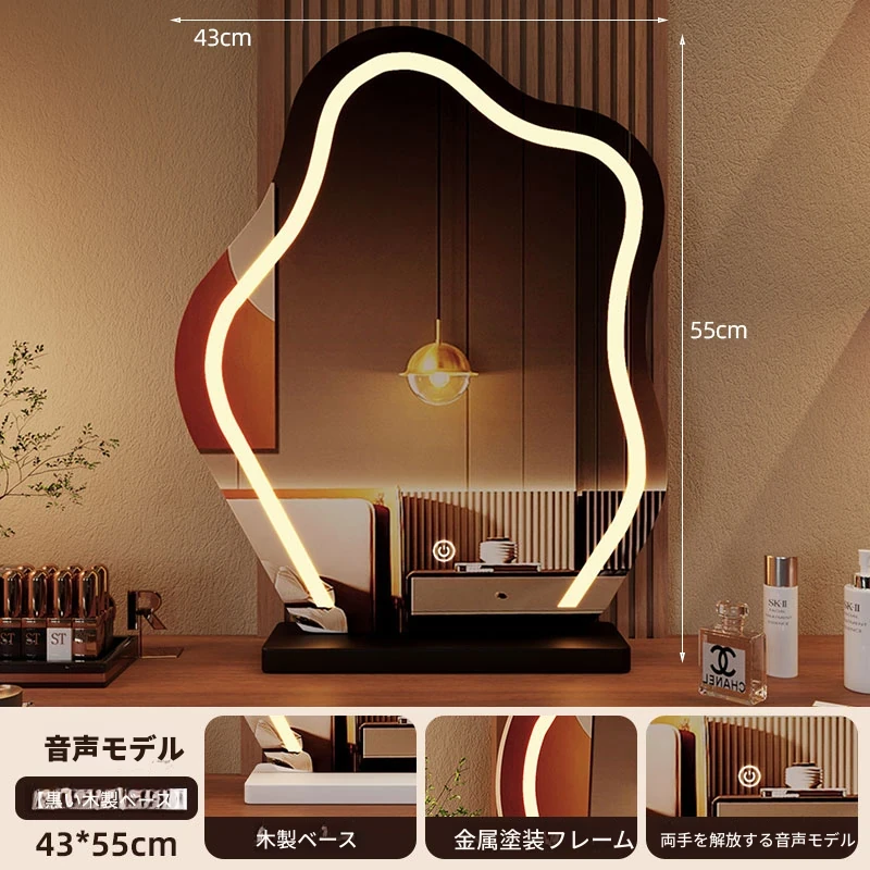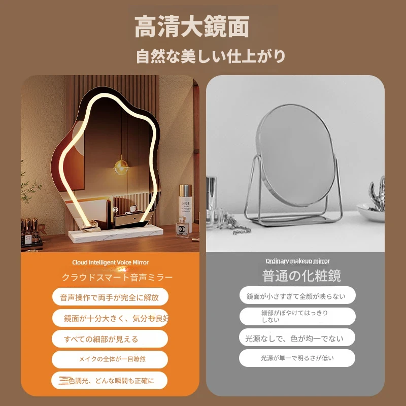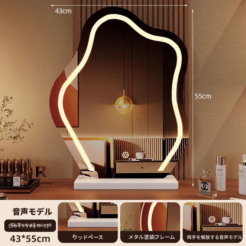 2025年最新モデル!スマート音声操作のLED補光雲朵ミラー、インスタ映え間違いなしのラグジュアリーな家庭用化粧鏡。寝室でのメイクアップがもっと楽しくなる!