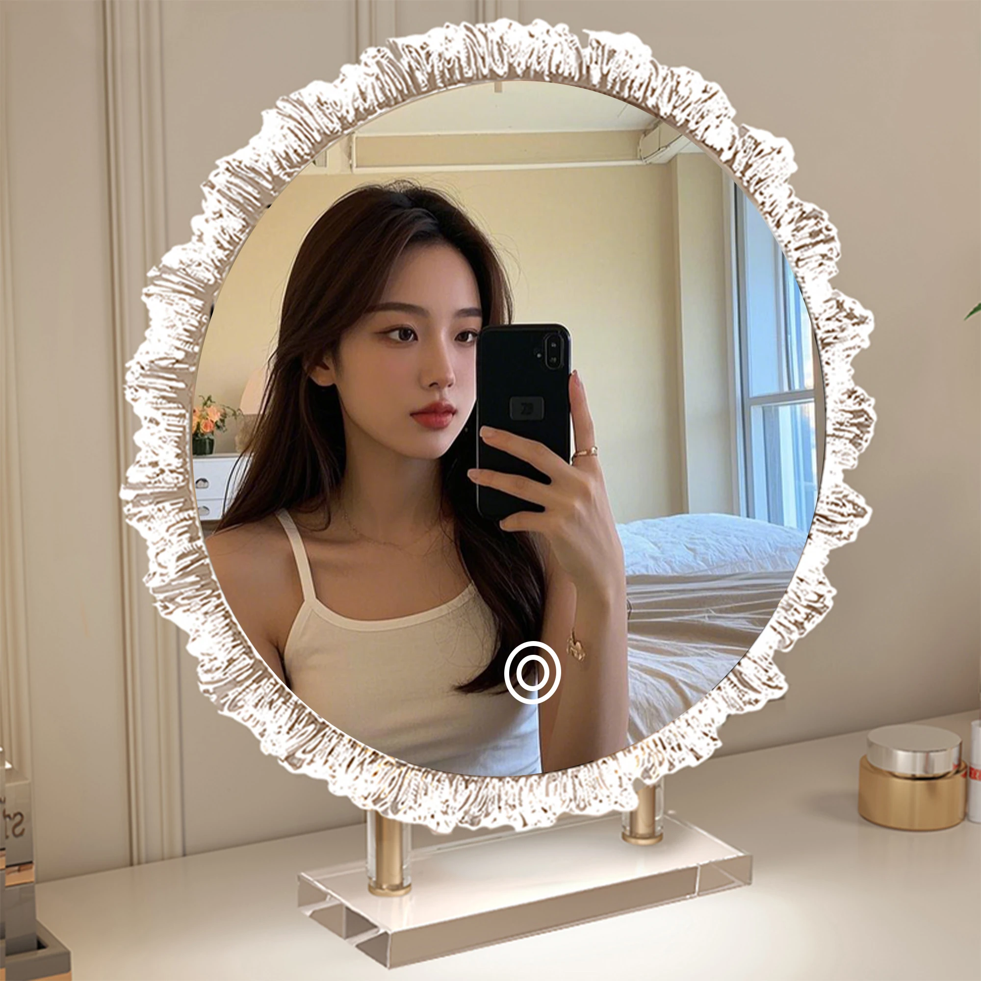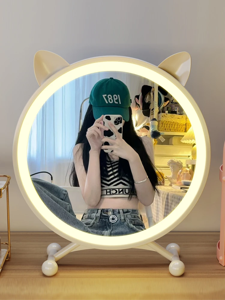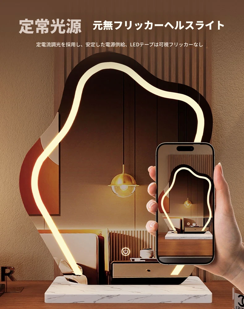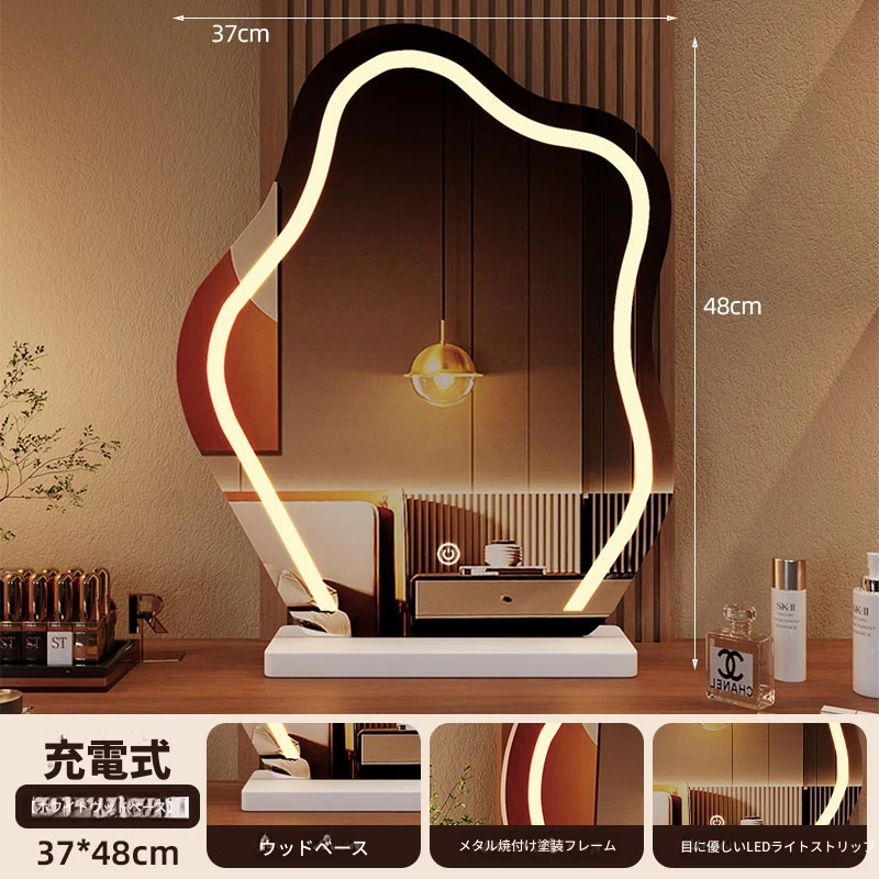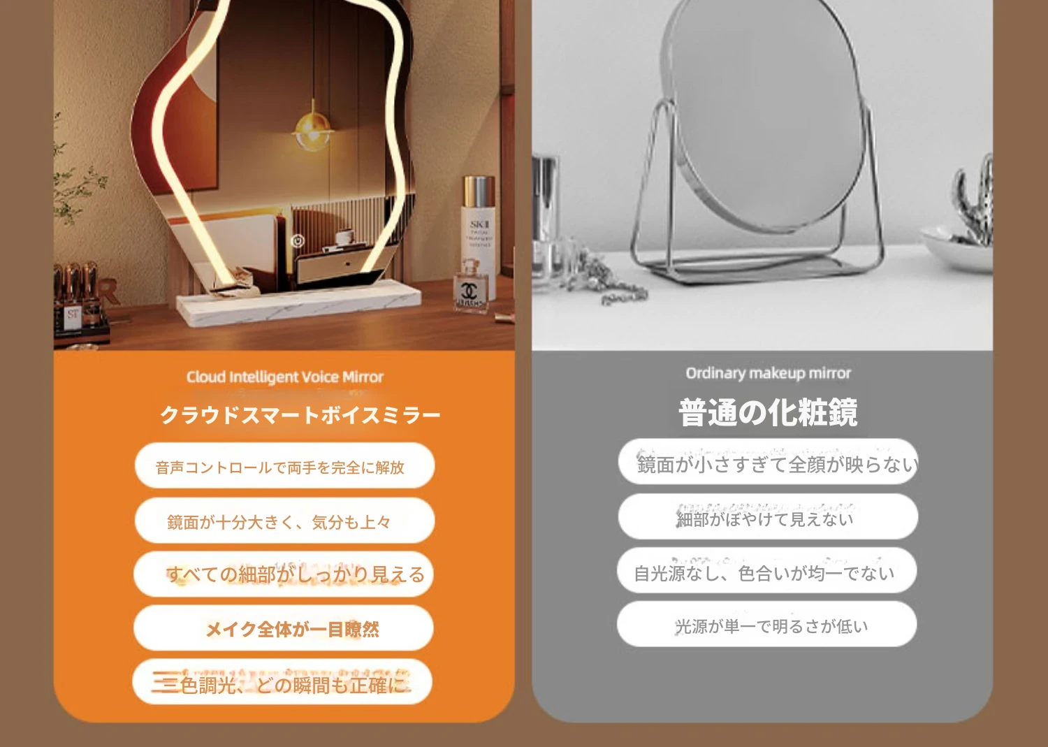 2025年最新モデル!スマート音声操作のLED補光雲朵ミラー、インスタ映え間違いなしのラグジュアリーな家庭用化粧鏡。寝室でのメイクアップがもっと楽しくなる!