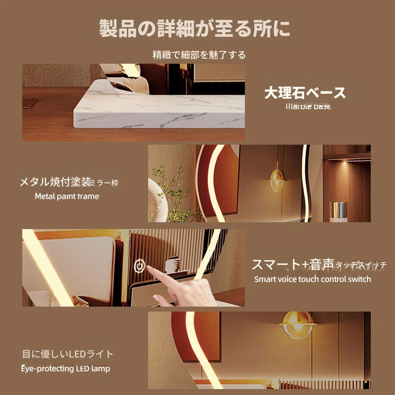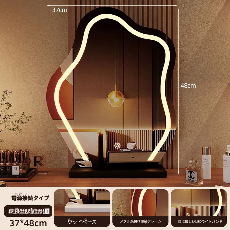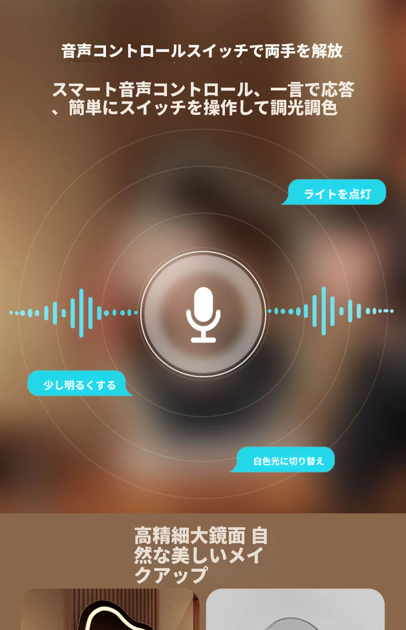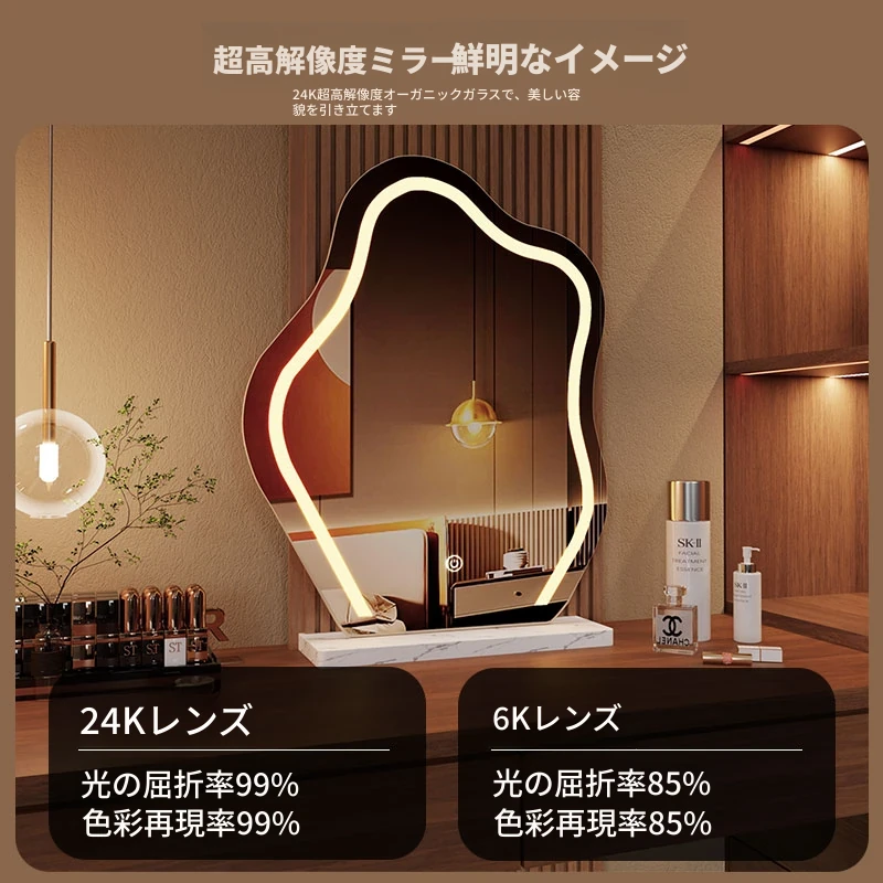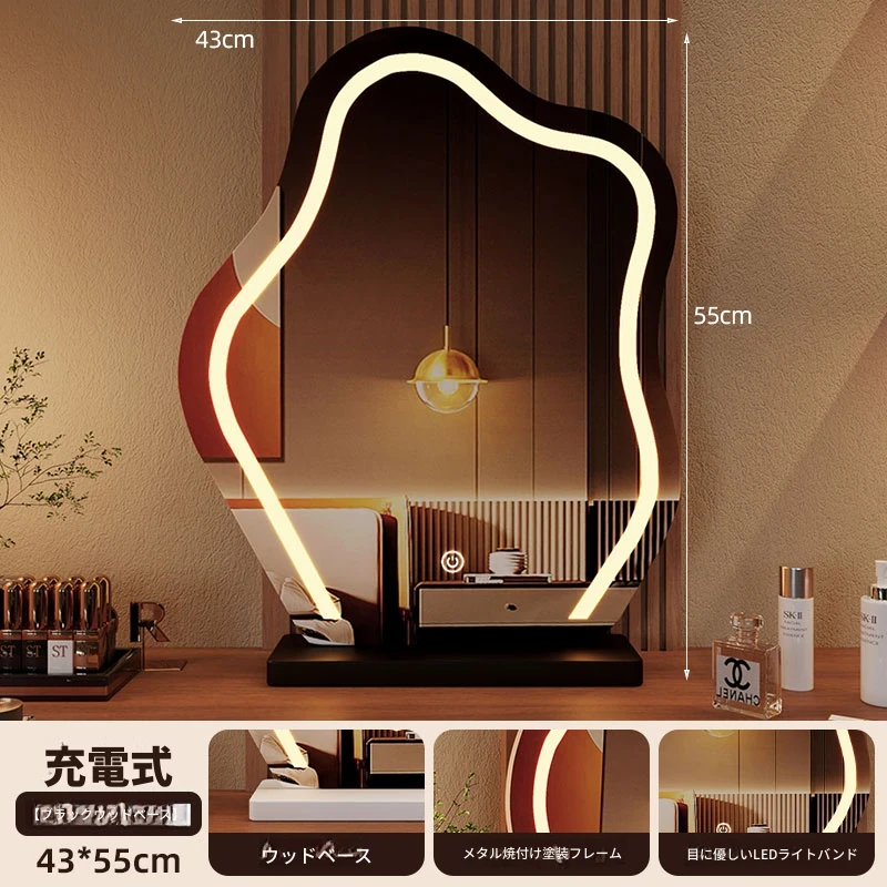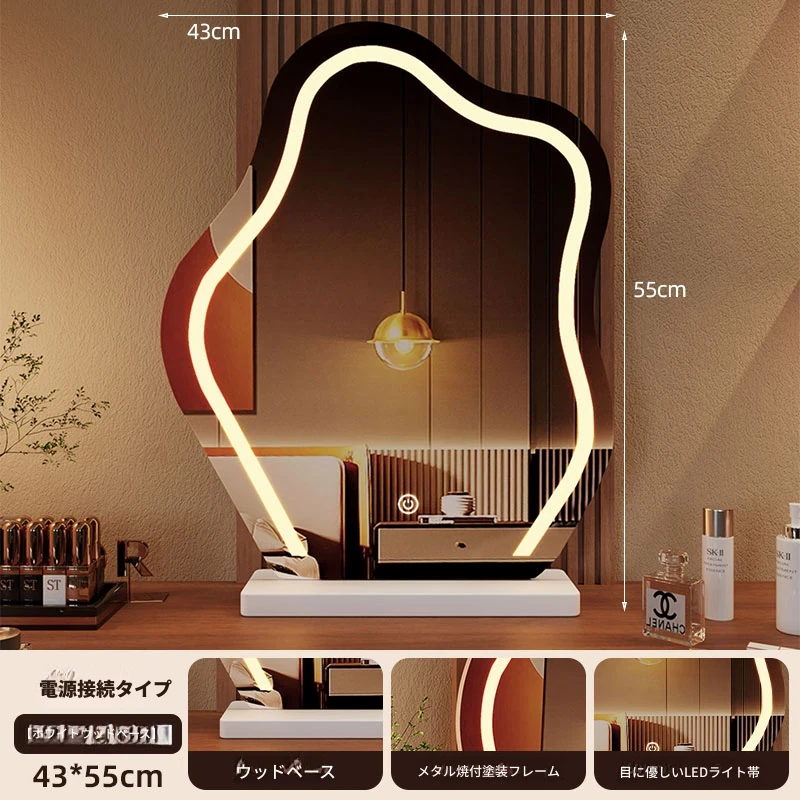 2025年最新モデル!スマート音声操作のLED補光雲朵ミラー、インスタ映え間違いなしのラグジュアリーな家庭用化粧鏡。寝室でのメイクアップがもっと楽しくなる!