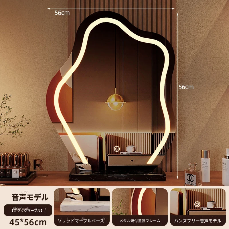 新アップグレード【ハンズフリー音声タイプ】大サイズクラウドスマートミラー45*56ラグジュアリーブラック(天然大理石⭐無段階調光)