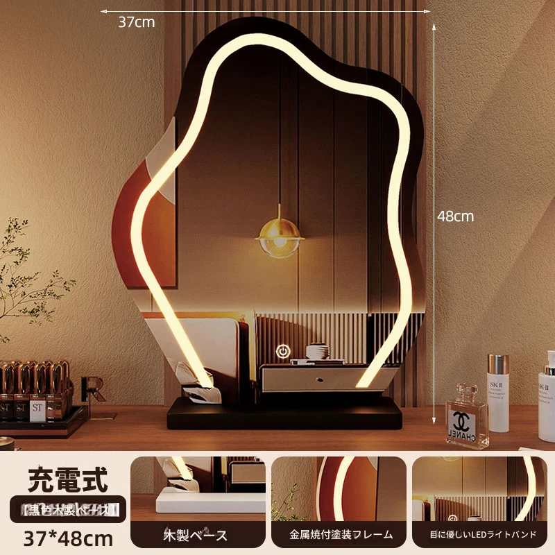 【充電・接続両用タイプ】中サイズクラウドスマートミラー37*48ラグジュアリーブラック(木製ベース✅安全・環境保護)