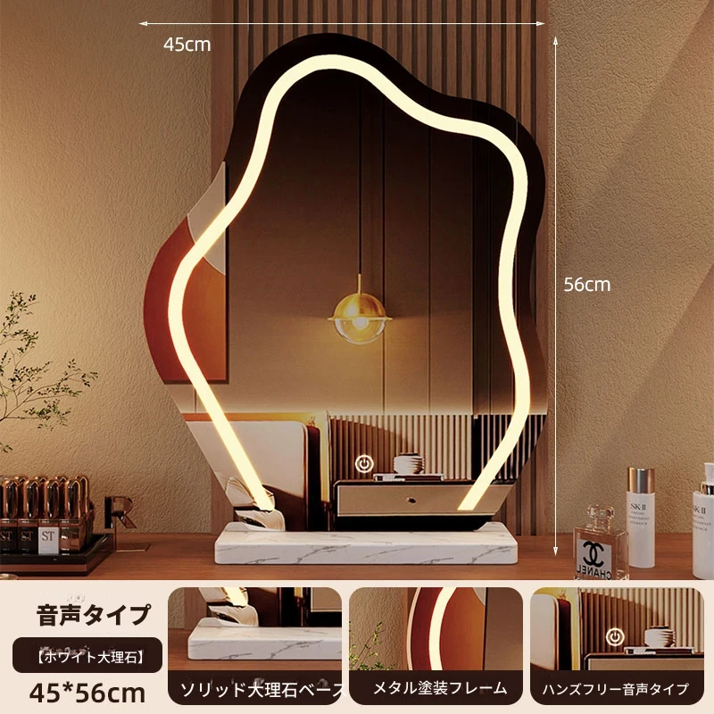 新アップグレード【ハンズフリー音声タイプ】大サイズクラウドスマートミラー45*56パールホワイト(天然大理石⭐無段階調光)